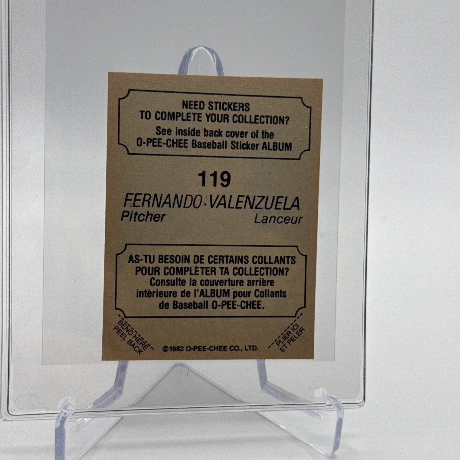 1982 O-Pee-Chee Stickers Fernando Valenzuela Card #119 NM-MT FREE SHIPPING