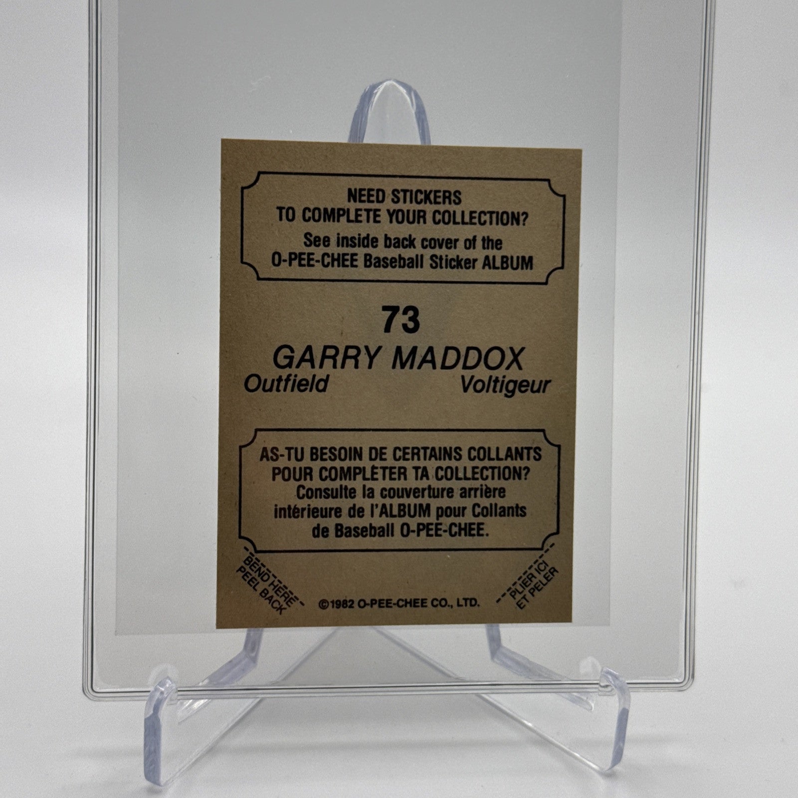 1982 O-Pee-Chee Stickers Garry Maddox Baseball Card #73 NM-MT FREE SHIPPING