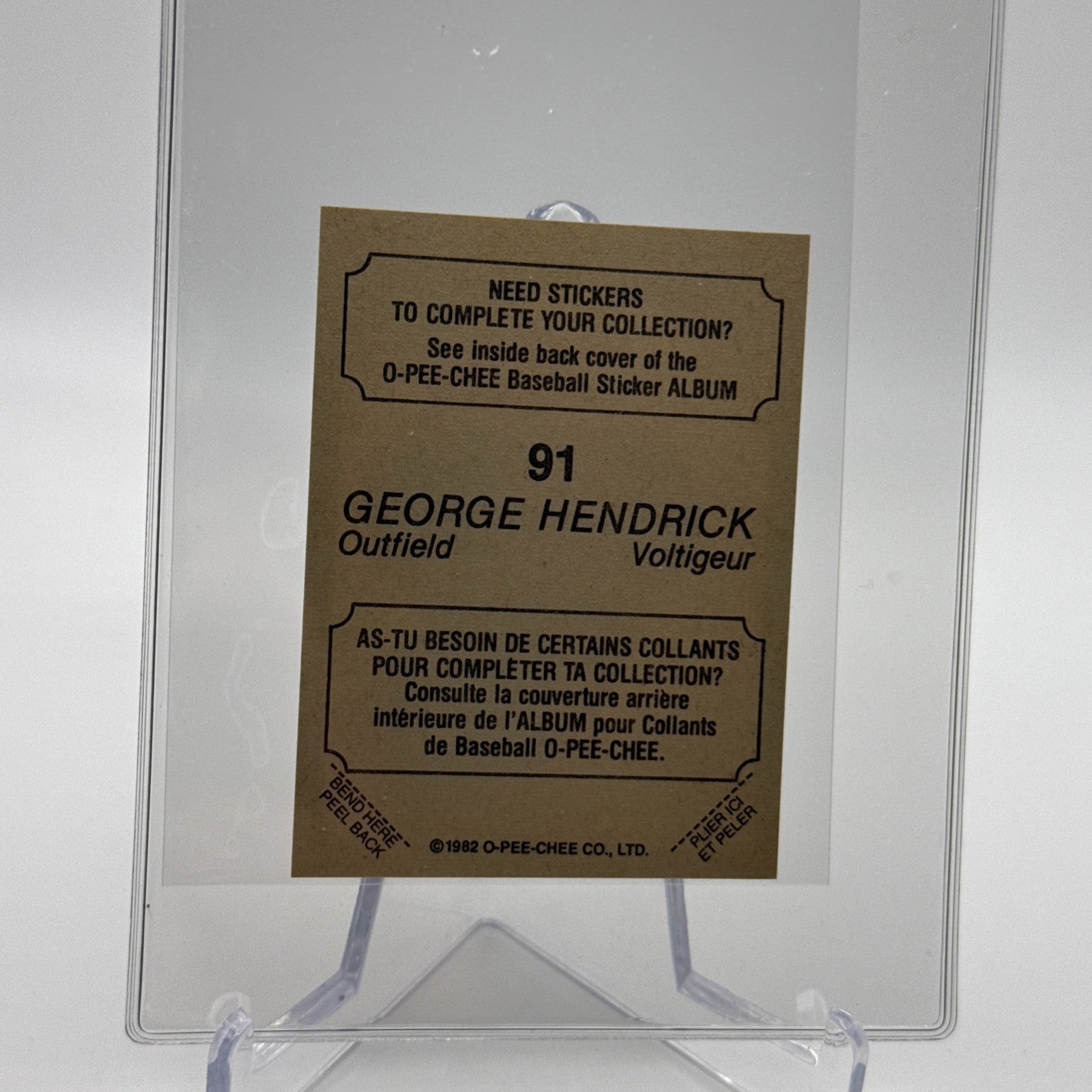 1982 O-Pee-Chee Stickers George Hendrick Baseball Card #91 NM-MT FREE SHIPPING