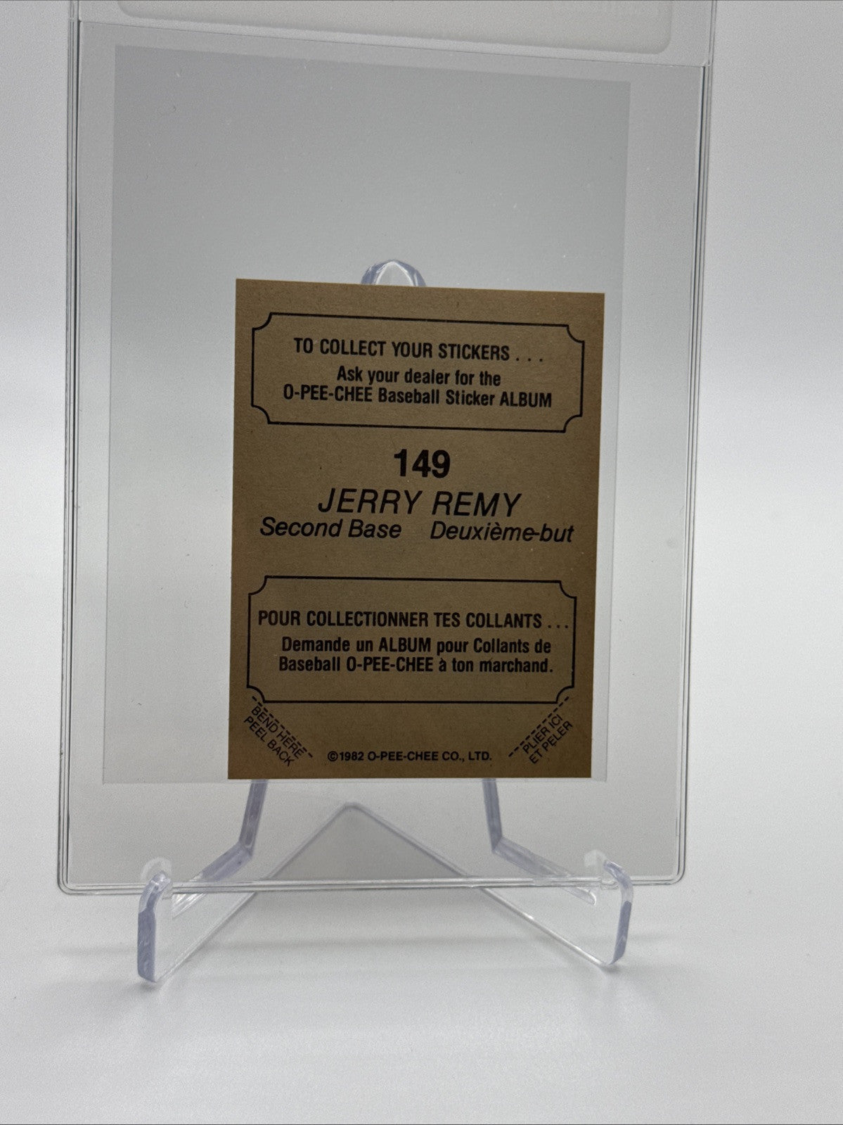 1982 O-Pee-Chee Stickers Jerry Remy Baseball Card #149 NM-MT FREE SHIPPING