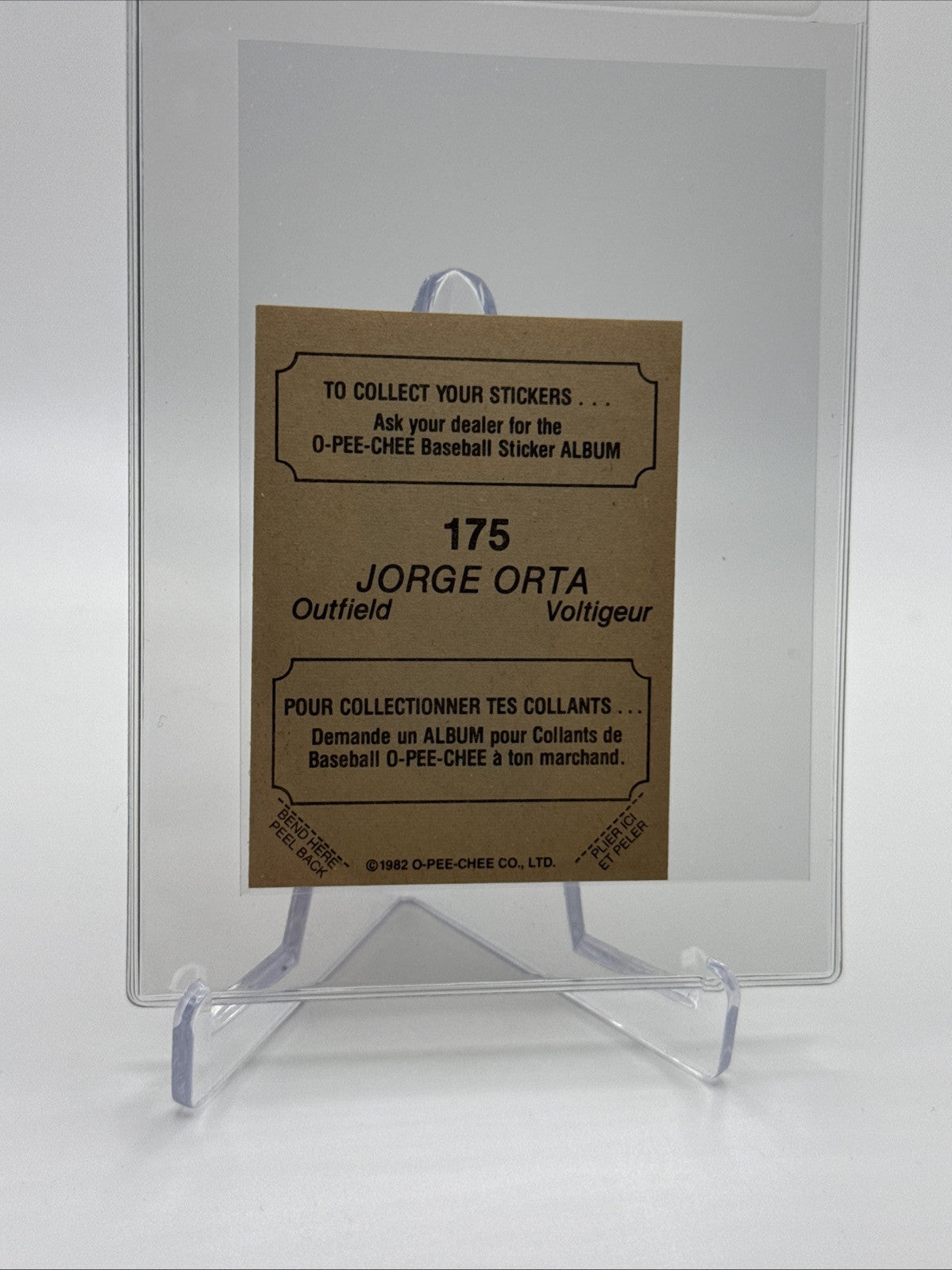 1982 O-Pee-Chee Stickers Jorge Orta Baseball Card #175 NM-MT FREE SHIPPING