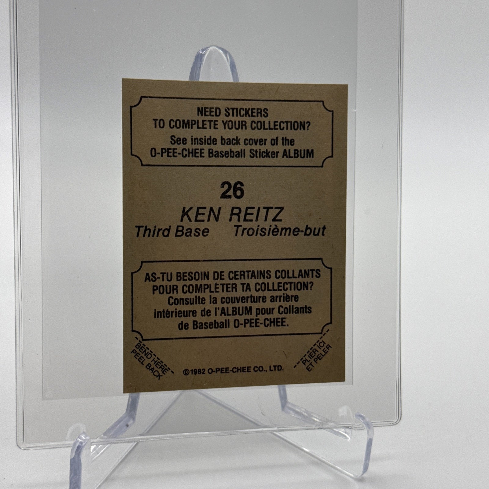 1982 O-Pee-Chee Stickers Ken Reitz Baseball Card #26 NM-MT FREE SHIPPING