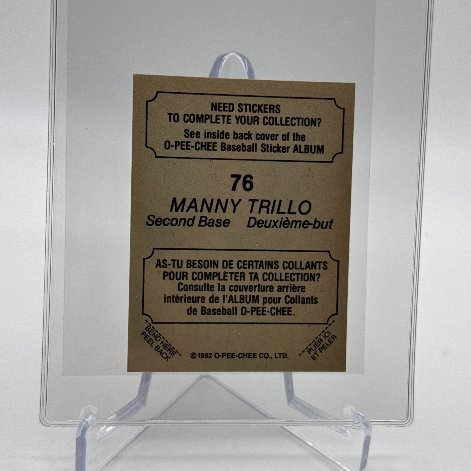 1982 O-Pee-Chee Stickers Manny Trillo Baseball Card #76 NM-MT FREE SHIPPING