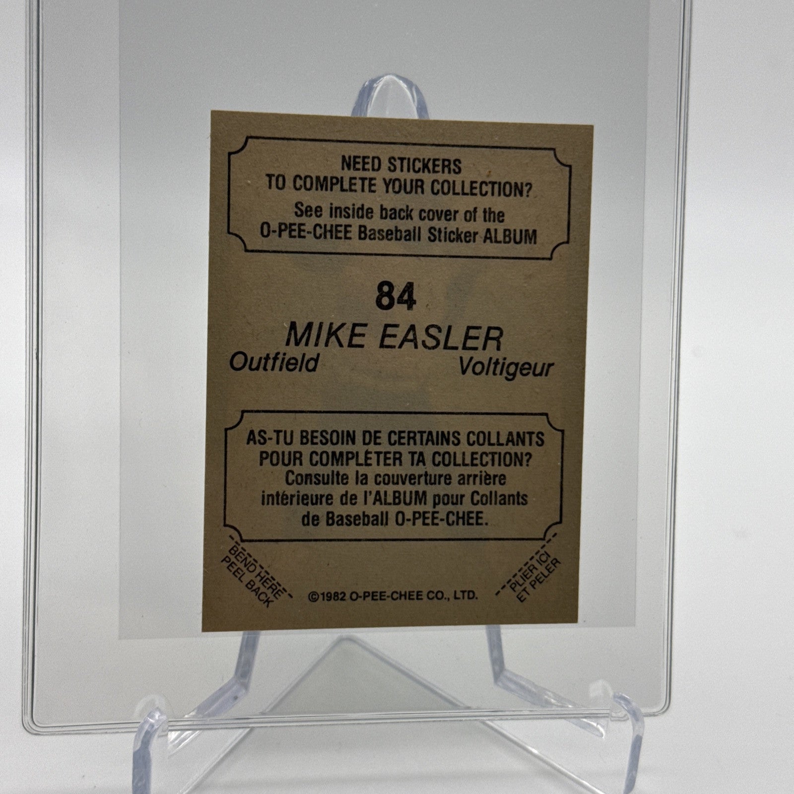 1982 O-Pee-Chee Stickers Mike Easler Baseball Card #84 NM-MT FREE SHIPPING