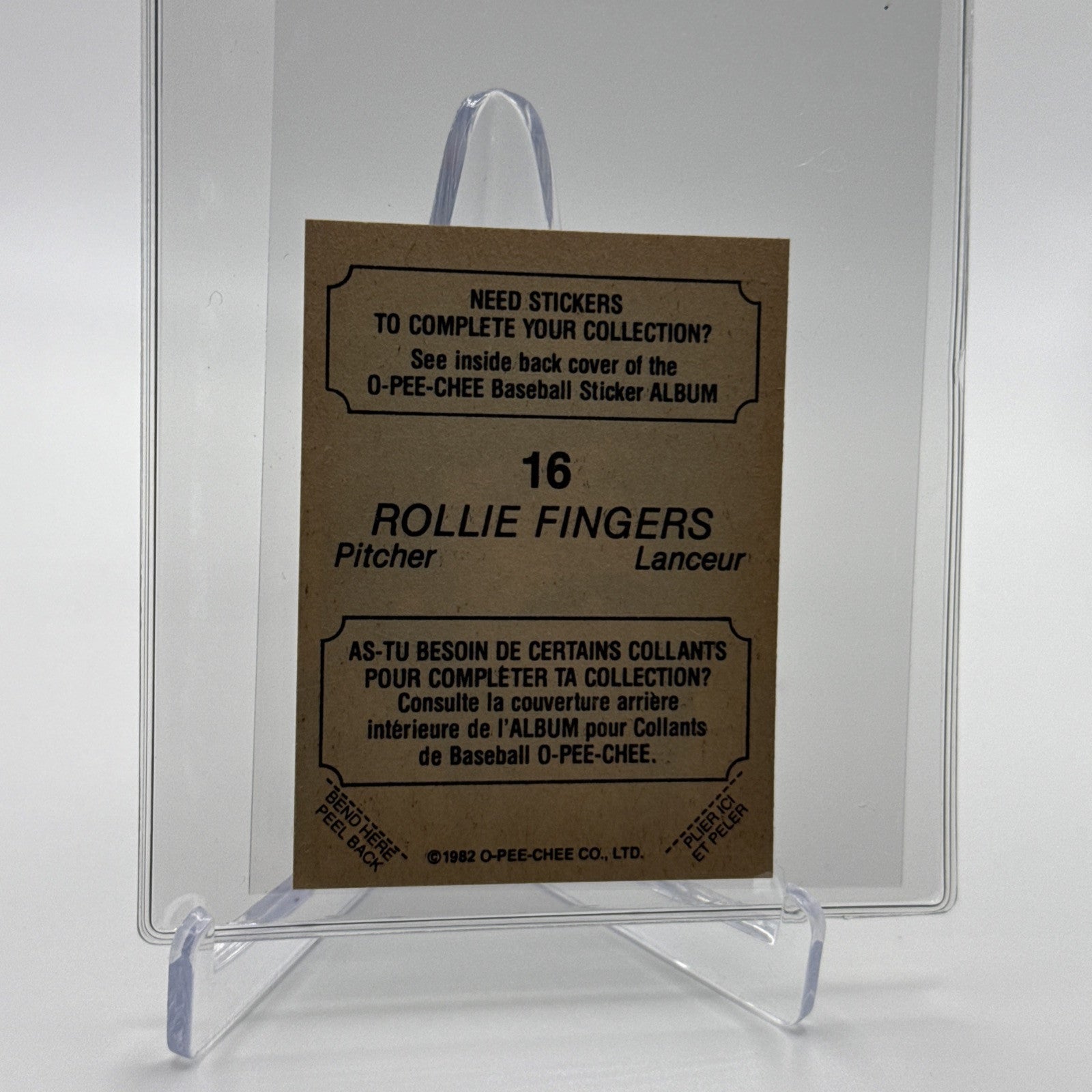 1982 O-Pee-Chee Stickers Rollie Fingers Card #16 NM-MT FREE SHIPPING