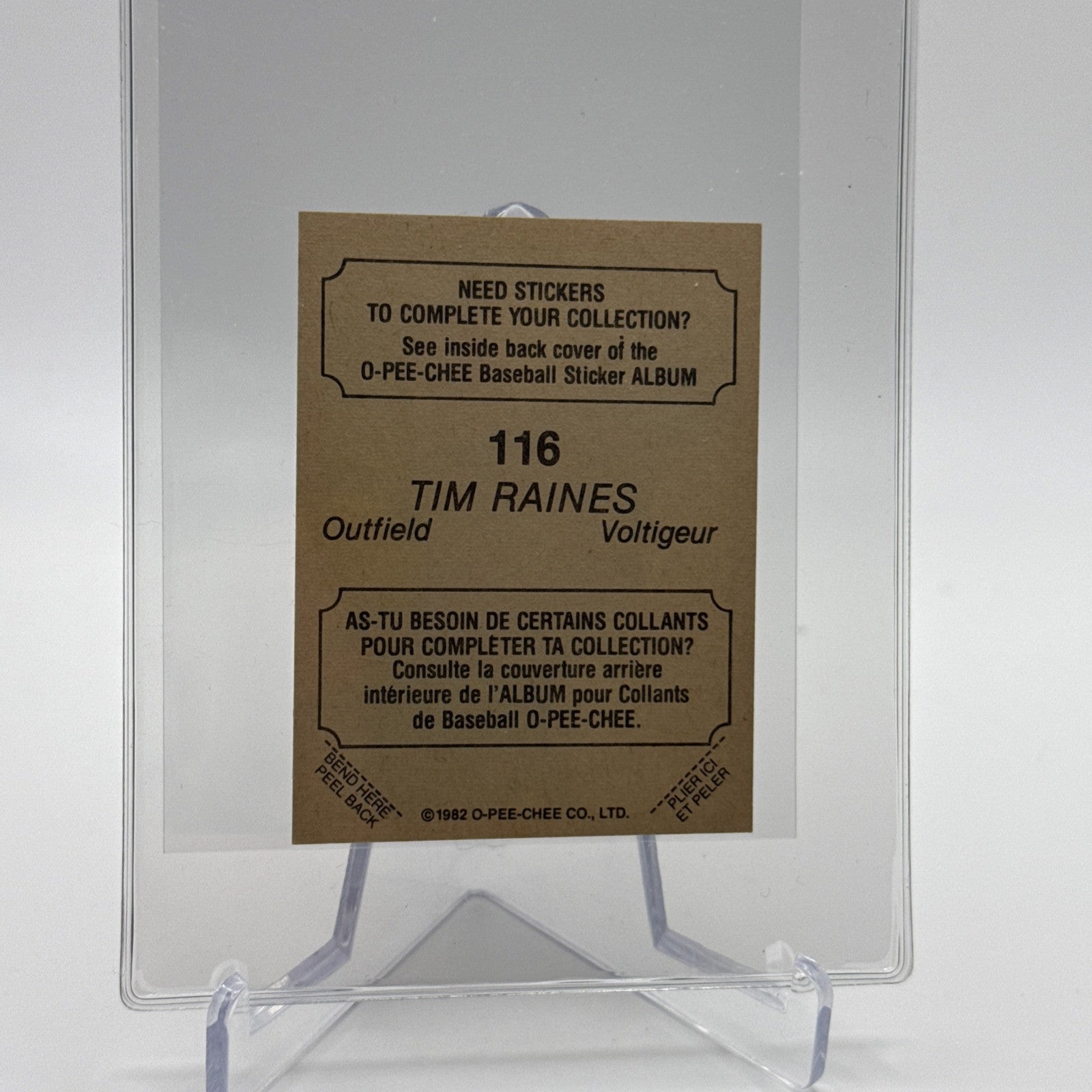 1982 O-Pee-Chee Stickers Tim Raines Baseball Card #116 NM-MT FREE SHIPPING