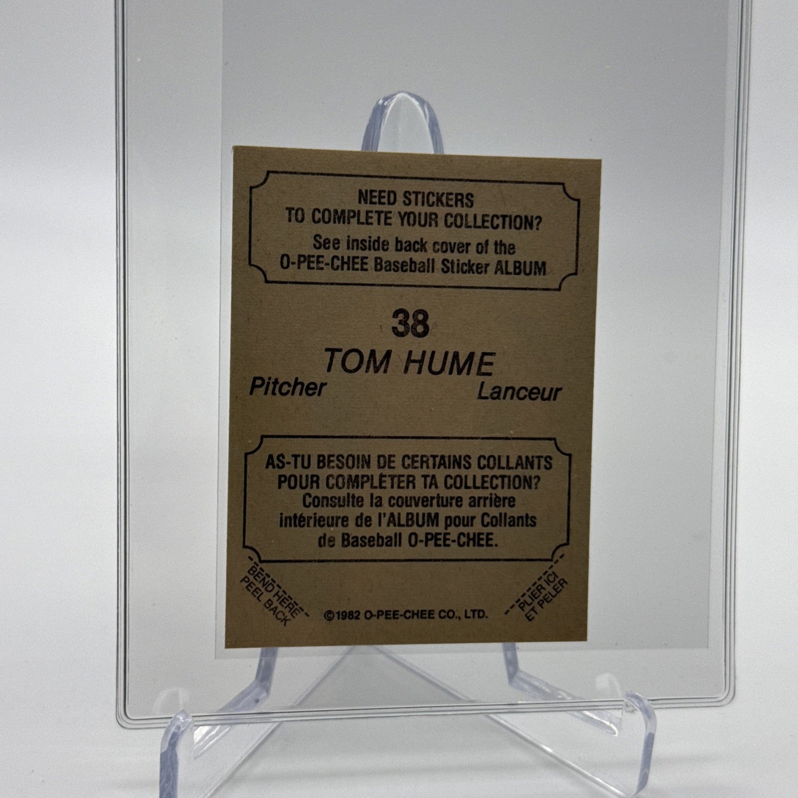 1982 O-Pee-Chee Stickers Tom Hume Baseball Card #38 NM-MT FREE SHIPPING