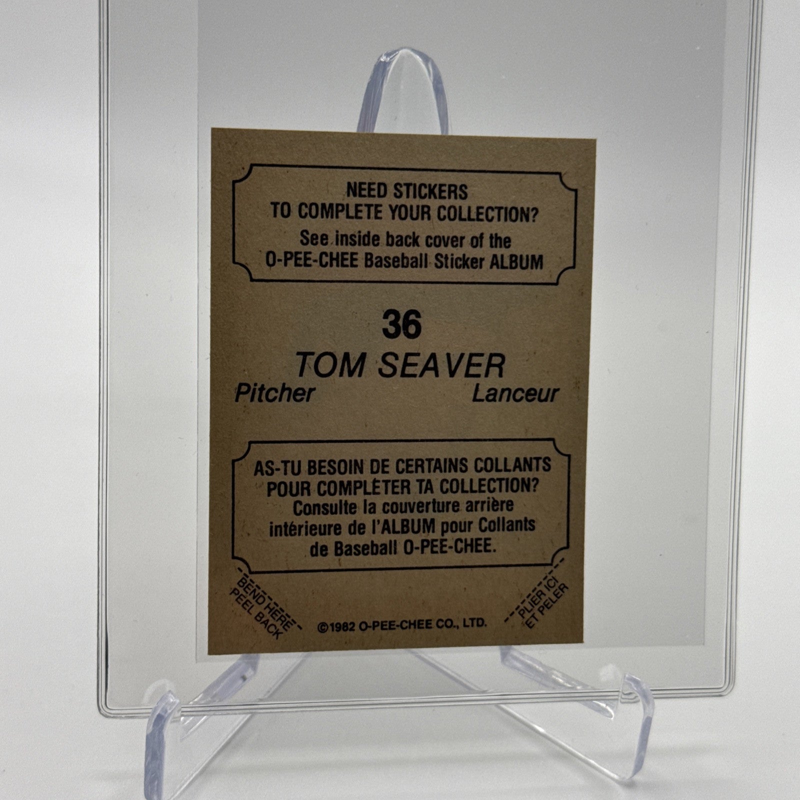 1982 O-Pee-Chee Stickers Tom Seaver Baseball Card #36 NM-MT FREE SHIPPING