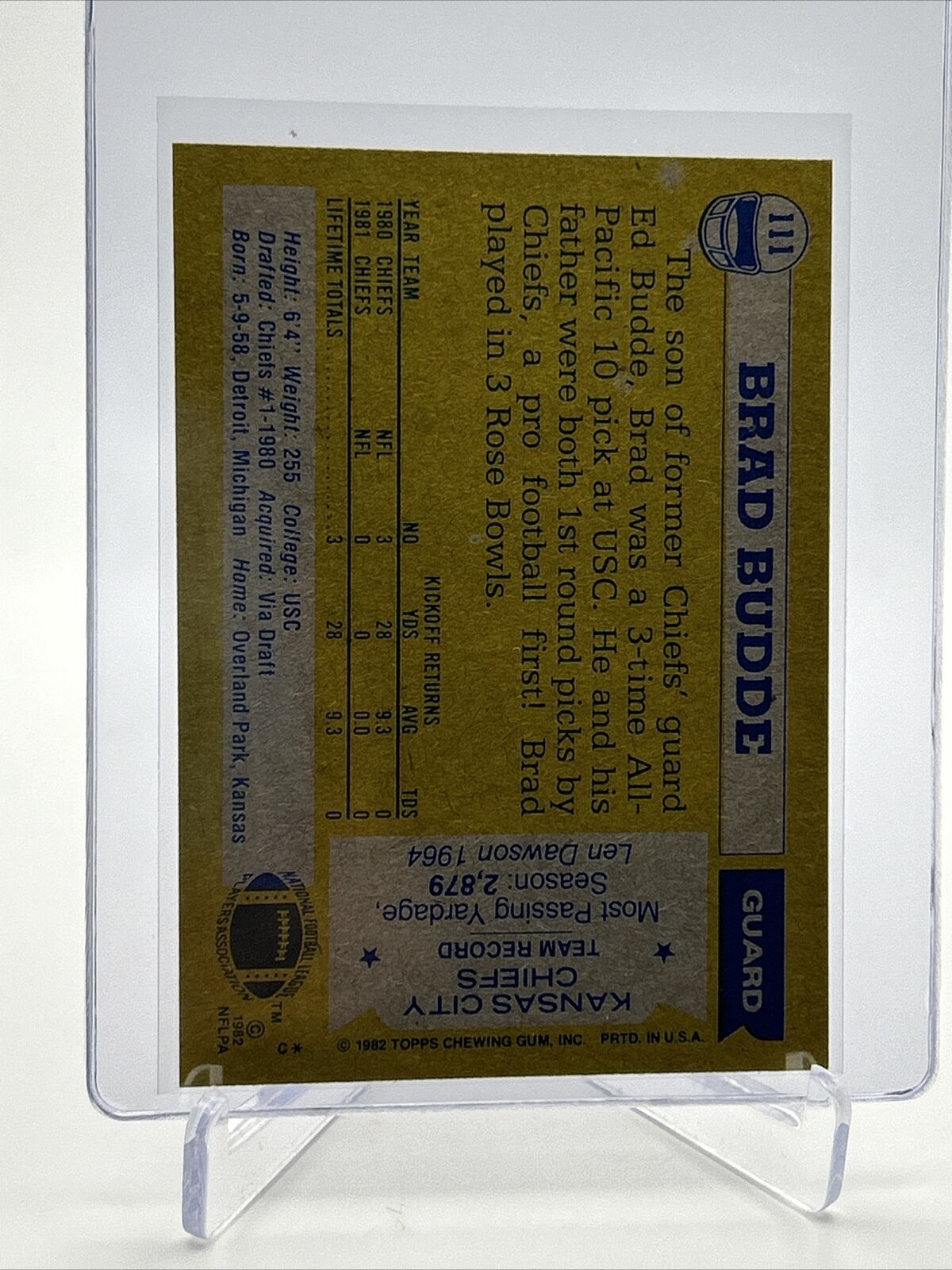1982 Topps Brad Budde Rookie Football Card #111 NM-MT FREE SHIPPING