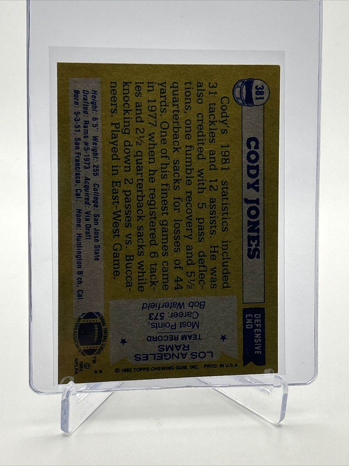 1982 Topps Cody Jones Rookie Football Card #381 NM-MT FREE SHIPPING