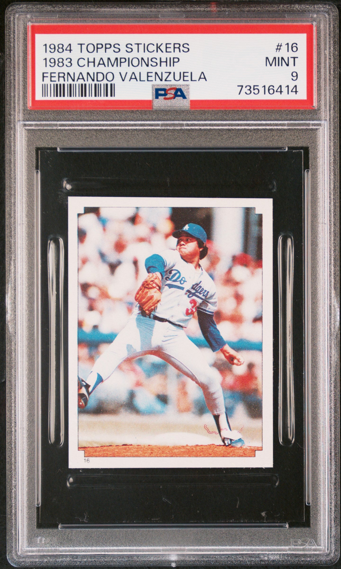 Hello, thanks for your interest in this fixed price listing. You are purchasing a 1984 Topps Stickers Baseball 1983 Championship #16 Fernando Valenzuela PSA 9 73516414. This fixed price listing is for the exact card listed in the title, and shown in the pictures. We guarantee that you will be satisfied with your purchase, or you are welcome to return the card (at my cost) with our 30 day return policy. This listing is brought to you by Sports Cards Grading. Sports Cards Grading is a Top Rated Plus eBay seller. Top Rated Plus eBay sellers are required to provide 30 day free returns, shipping within 1 day, and shipping with tracking. Shipping with tracking in a bubble mailer is our standard method of shipment. Please contact me through eBay if you have any questions on this listing. Thanks for your consideration. Listed With Mascot.