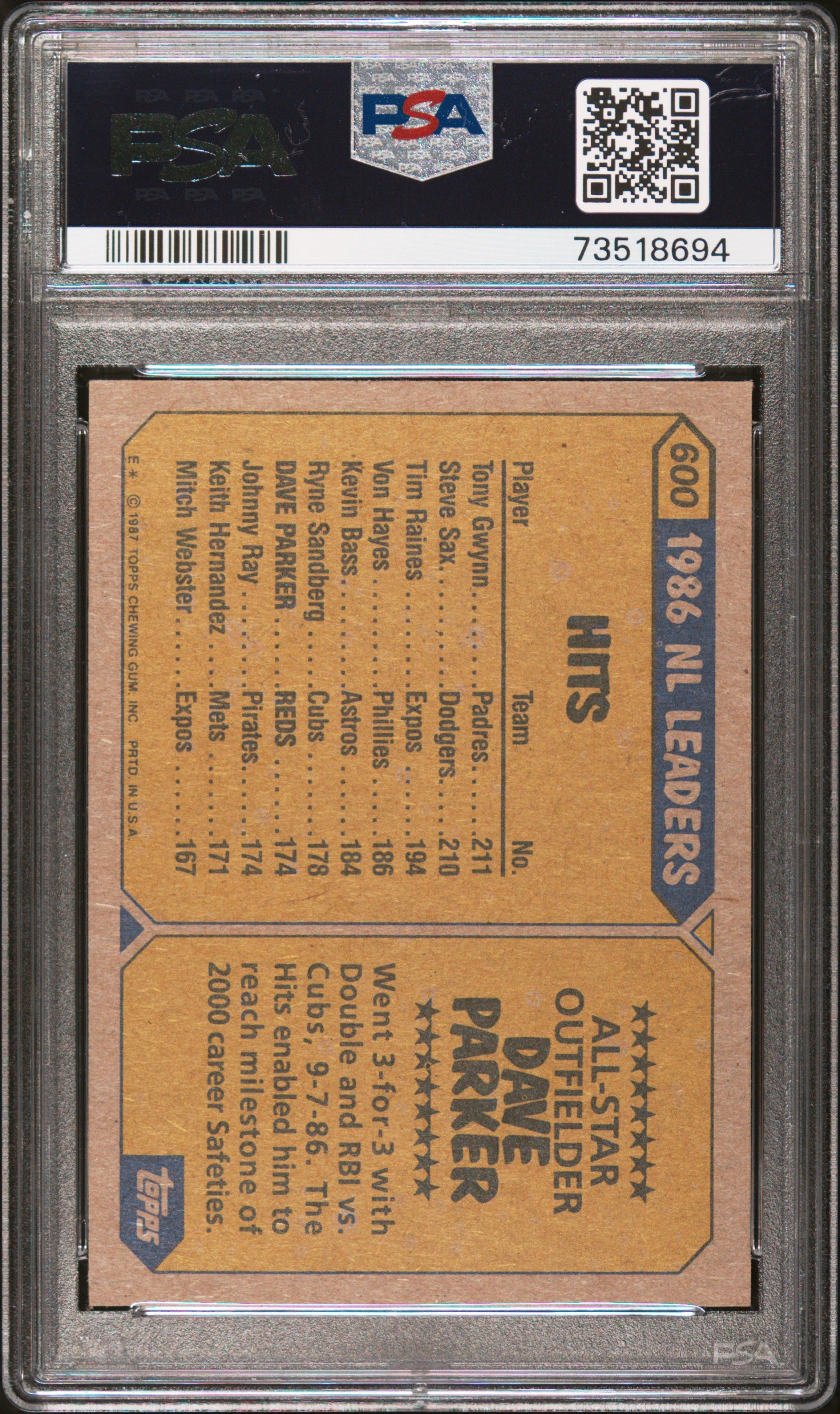 1987 Topps Baseball Dave Parker #600 Psa 8 73518694