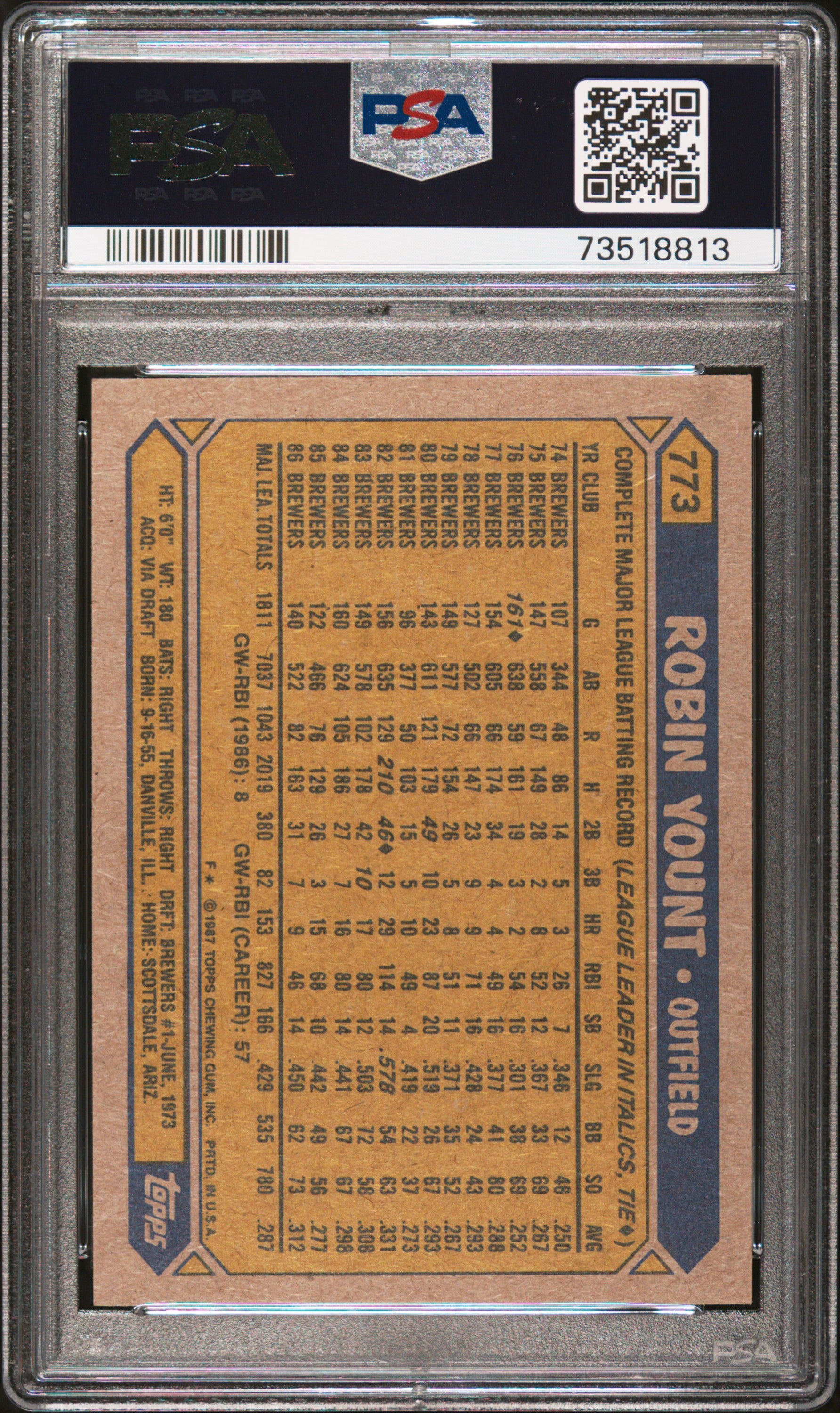 1987 Topps Baseball Robin Yount #773 Psa 8 73518813