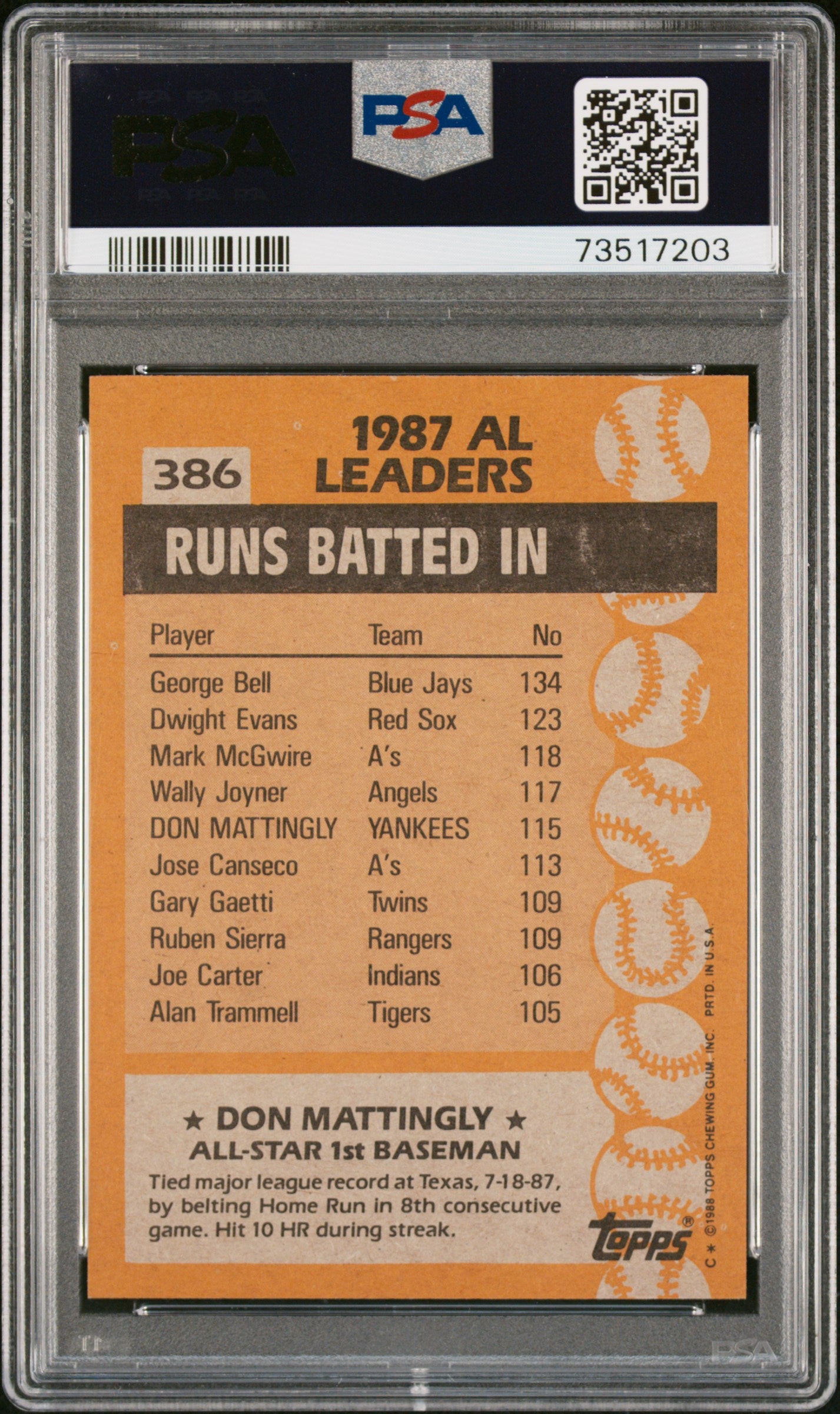 1988 Topps Baseball Don Mattingly #386 Psa 9 73517203