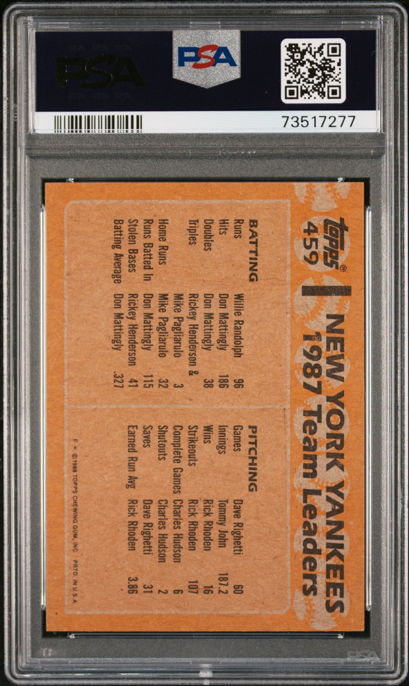 1988 Topps Baseball Yankees Leaders #459 Psa 9 73517277