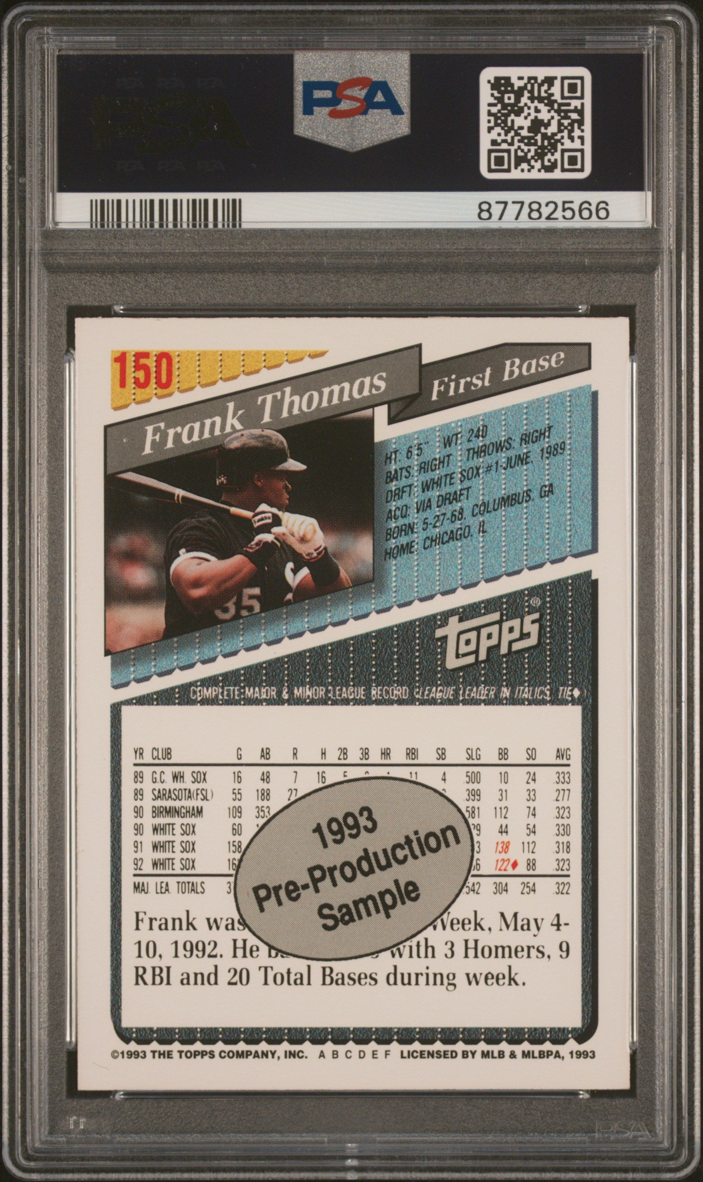 1993 Topps Pre-Production Baseball Frank Thomas #150 PSA 10 87782566