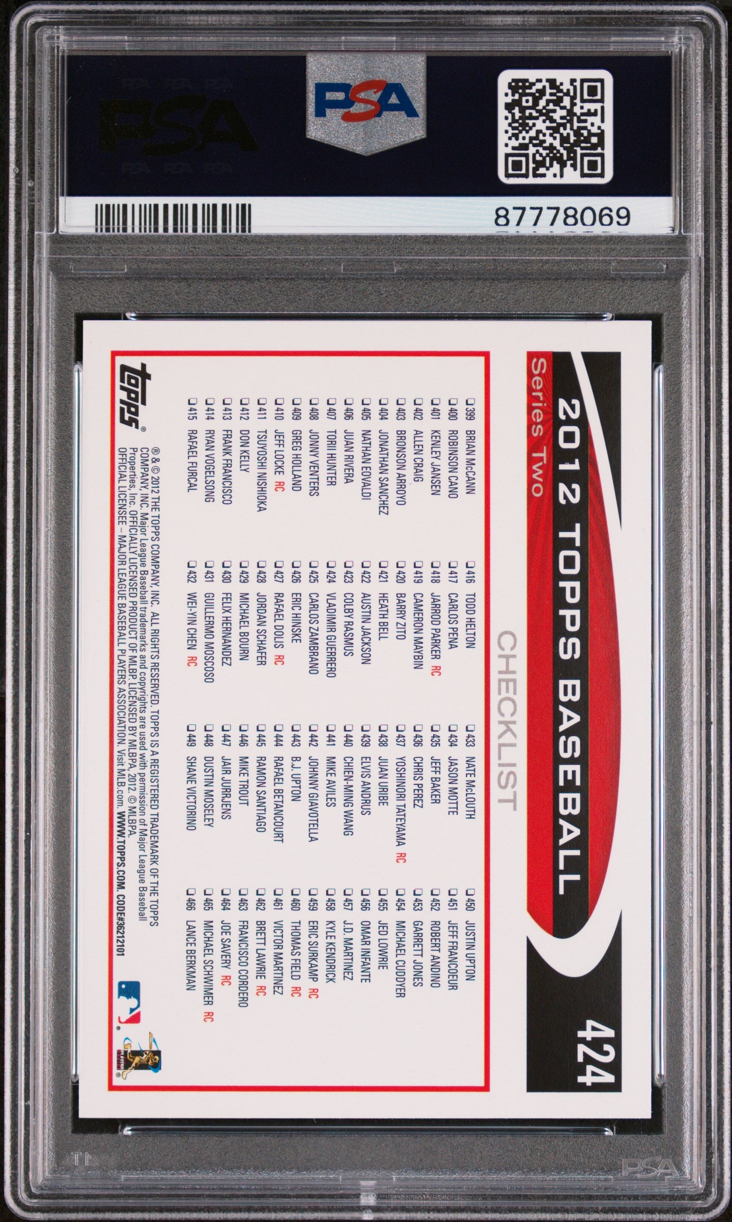Hello, thanks for your interest in this fixed price listing. You are purchasing a 2012 Topps Baseball Vladimir Guerrero #424 PSA 10 87778069. This fixed price listing is for the exact card listed in the title, and shown in the pictures. We guarantee that you will be satisfied with your purchase, or you are welcome to return the card (at my cost) with our 30 day return policy. This listing is brought to you by Sports Cards Grading. Sports Cards Grading is a Top Rated Plus eBay seller. Top Rated Plus eBay sellers are required to provide 30 day free returns, shipping within 1 day, and shipping with tracking. Shipping with tracking in a bubble mailer is our standard method of shipment. Please contact me through eBay if you have any questions on this listing. Thanks for your consideration. Listed With Mascot.