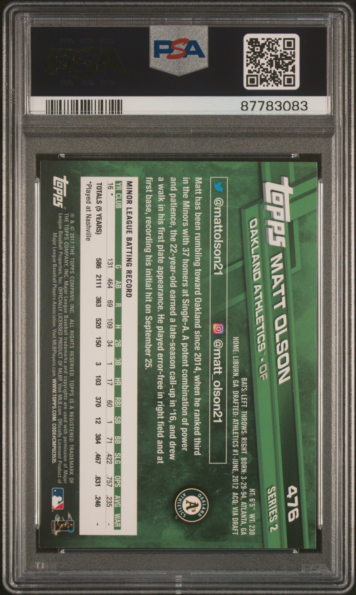2017 Topps Baseball Matt Olson #476 PSA 10 87783083