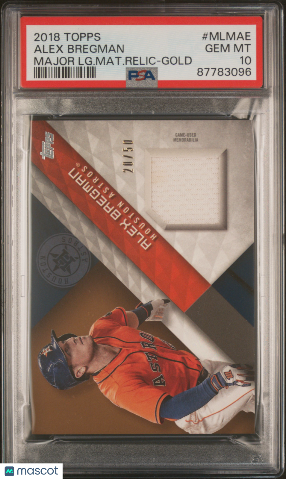 2018 Topps Major League Material Relic GOLD Alex Bregman PSA 10 87783096 POP 1