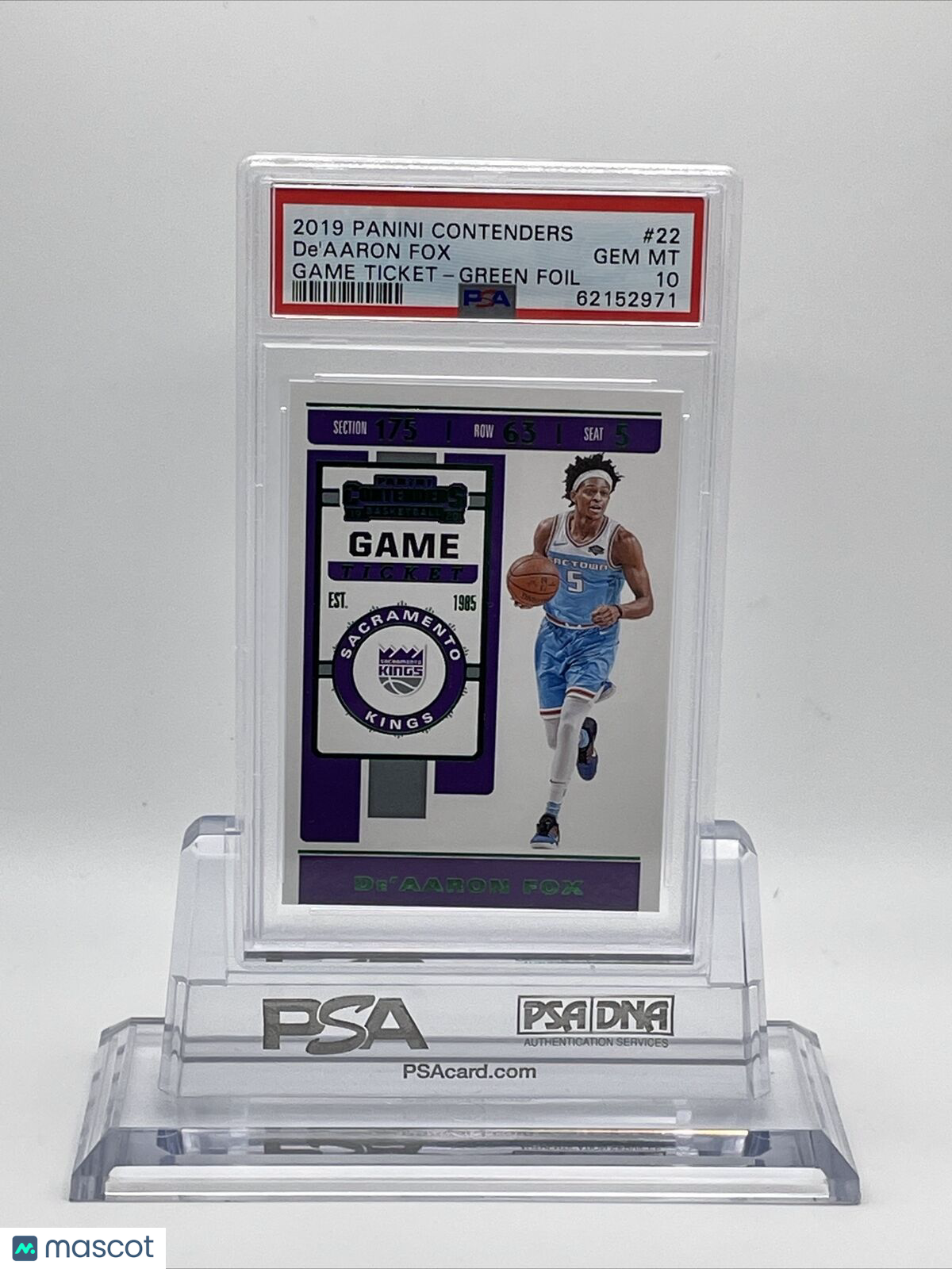 2019 Panini Contenders Game Ticket Green Foil De'Aaron Fox Card #22 PSA 10
