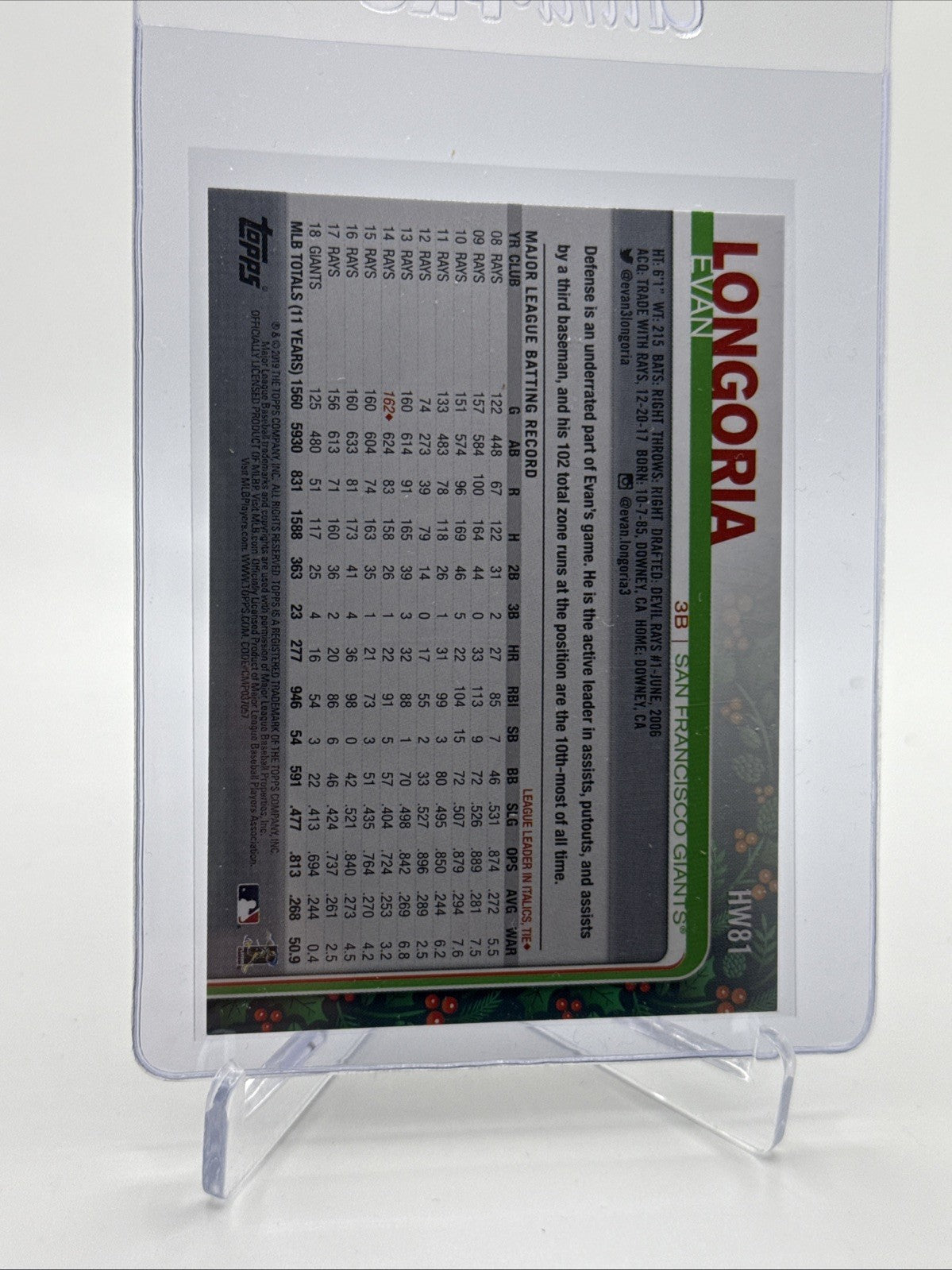 2019 Topps HOLIDAY Evan Longoria Baseball Card #HW81 Mint FREE SHIPPING
