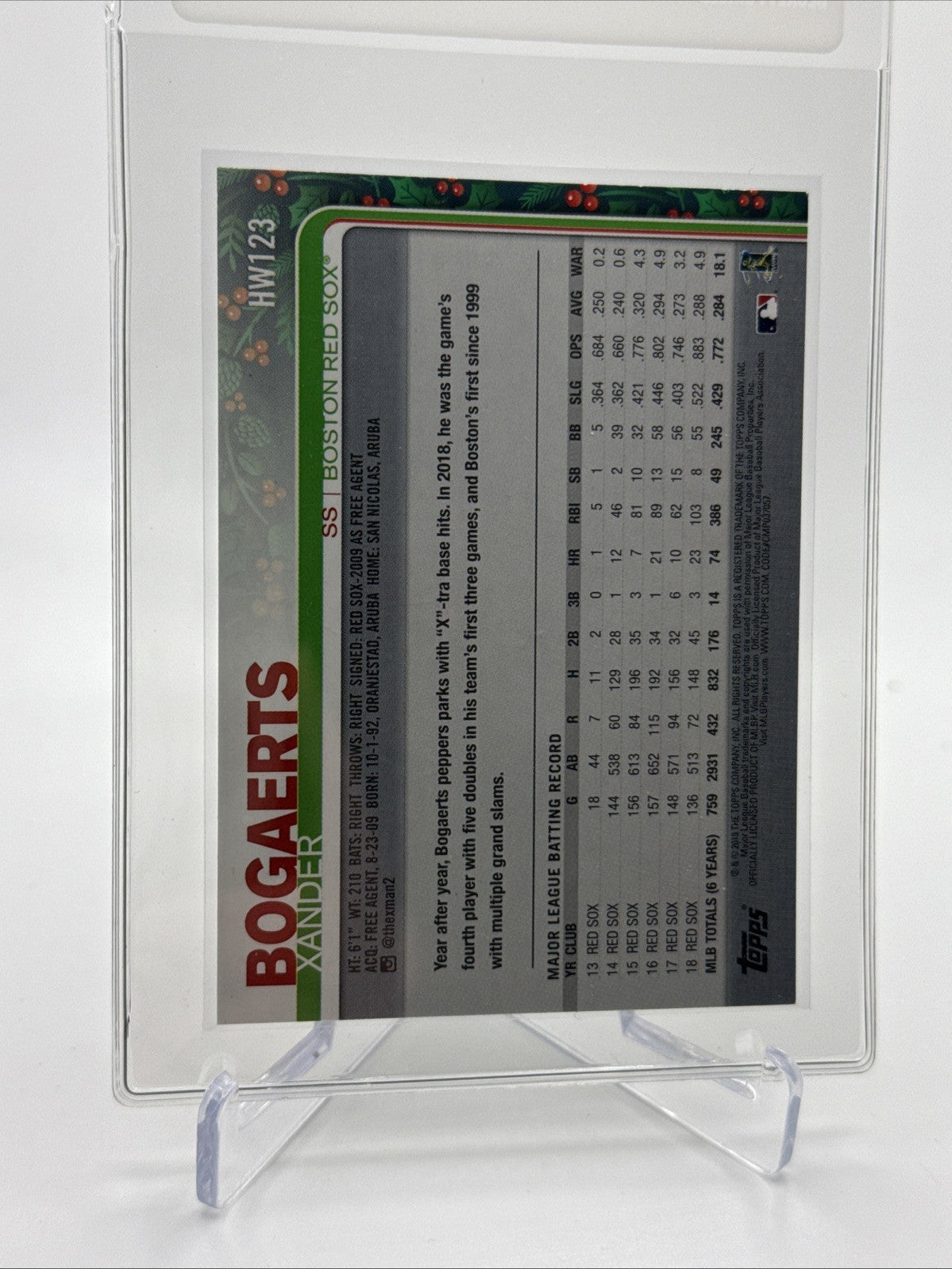 2019 Topps HOLIDAY Xander Bogaerts Baseball Card #HW123 Mint FREE SHIPPING