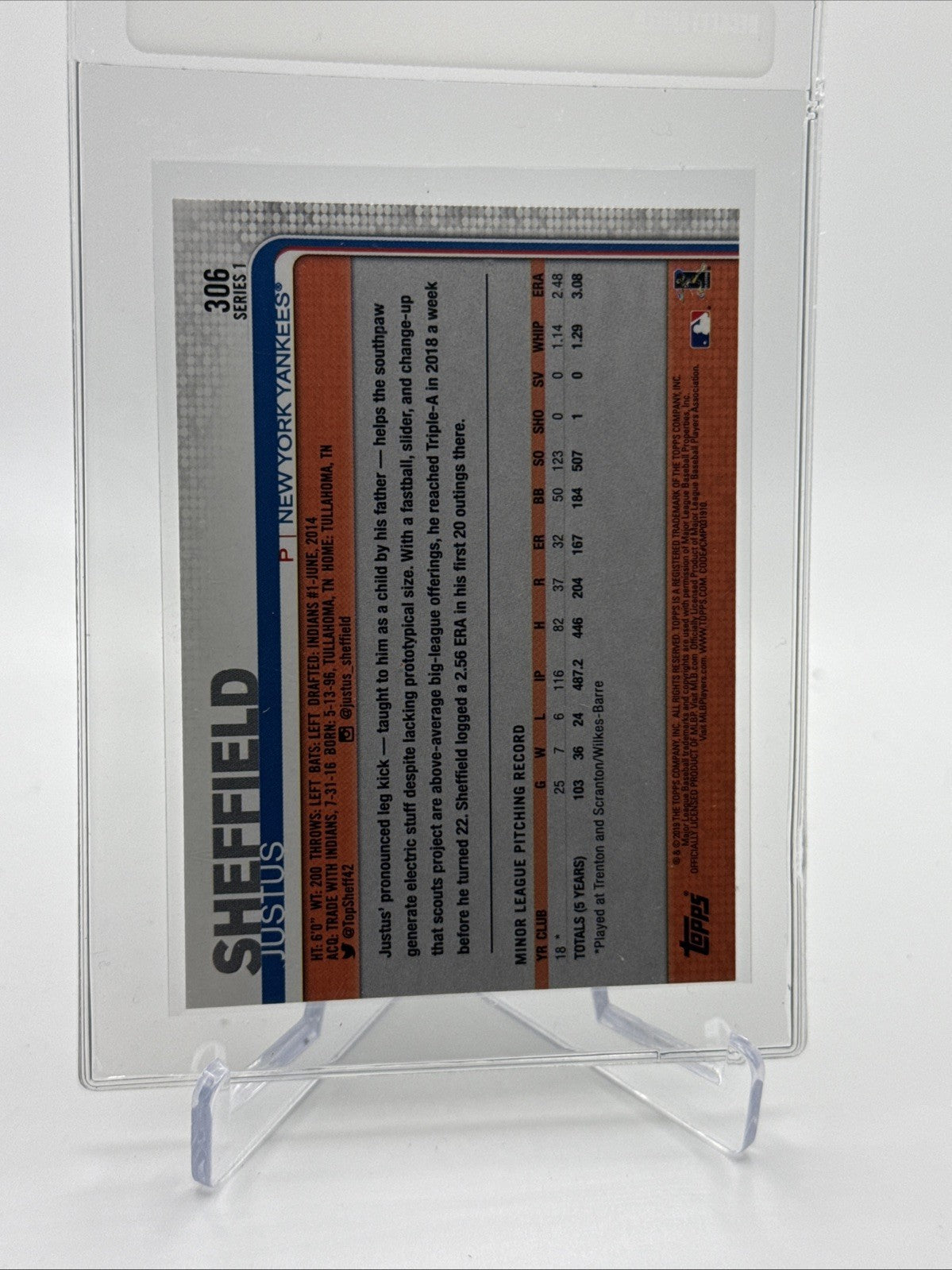 2019 Topps Justus Sheffield Rookie Baseball Card #306 Mint FREE SHIPPING