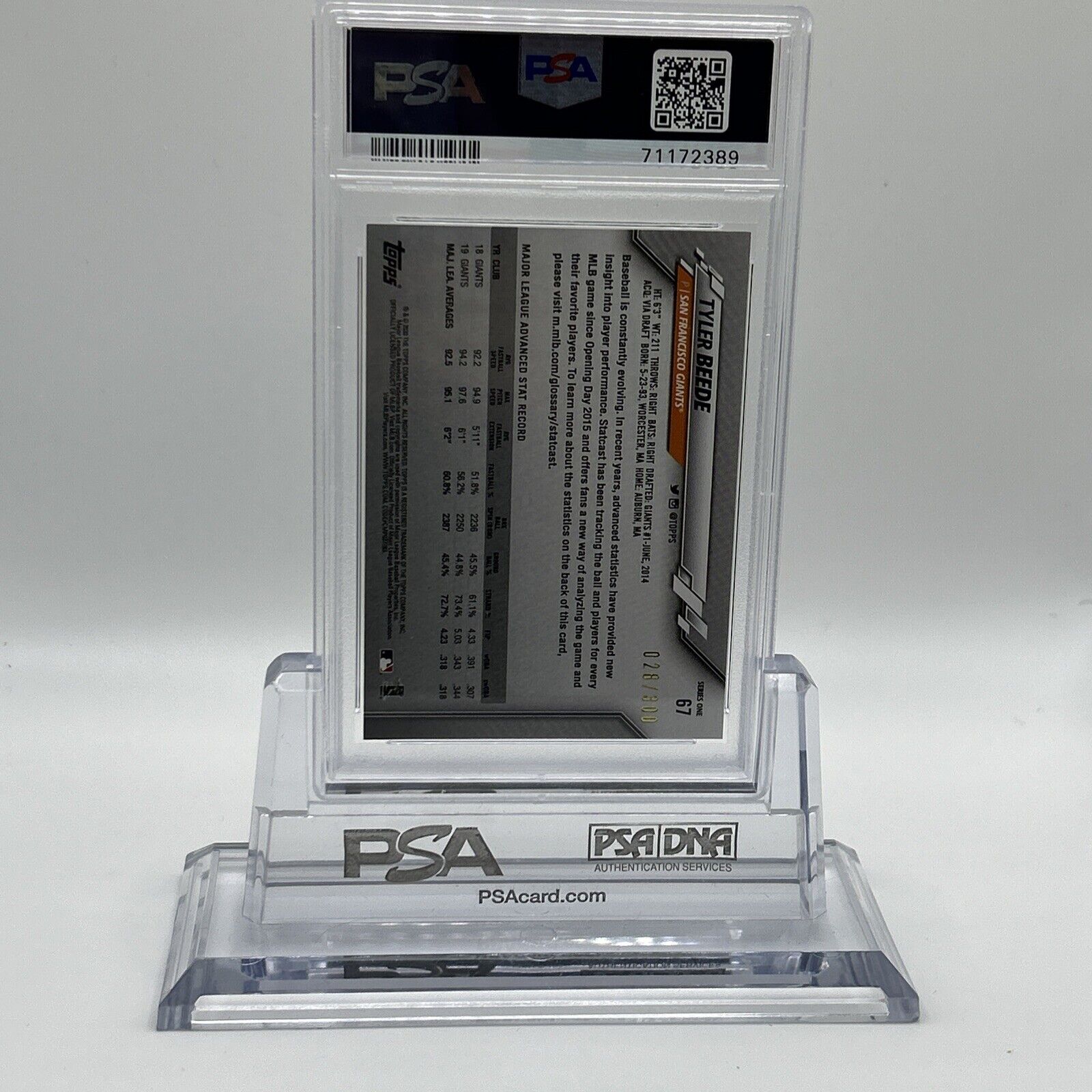 2020 Topps Tyler Beede Advanced Stat Baseball Card #67 PSA 10 Gem Mint POP 1
