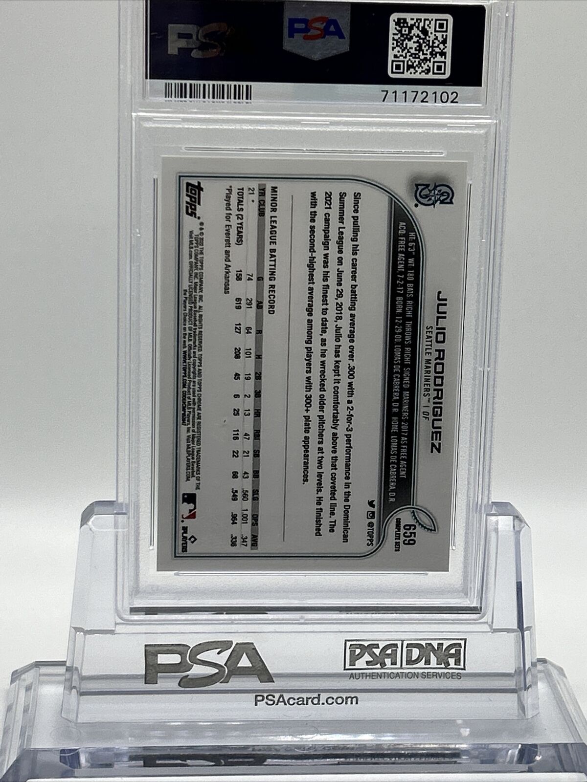 2022 Topps 582 Montgomery Club Julio Rodriguez Rookie Baseball Card #659 PSA 10
