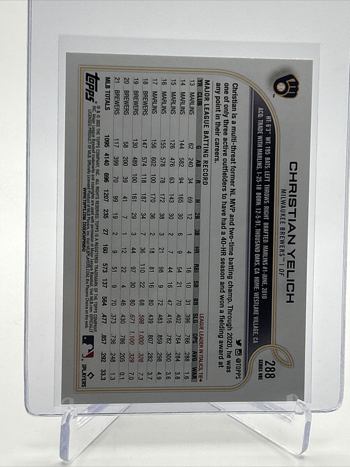 2022 Topps Christian Yelich Baseball Card #288 Mint FREE SHIPPING