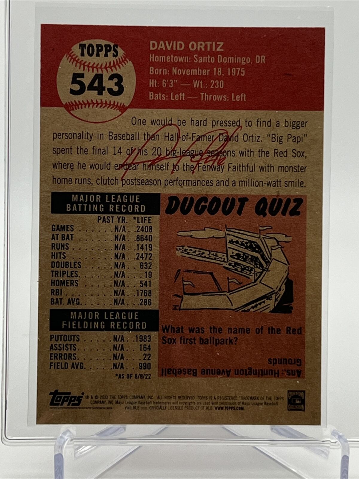 2022 Topps Living Set David Ortiz Baseball Card #543 Mint FREE SHIPPING