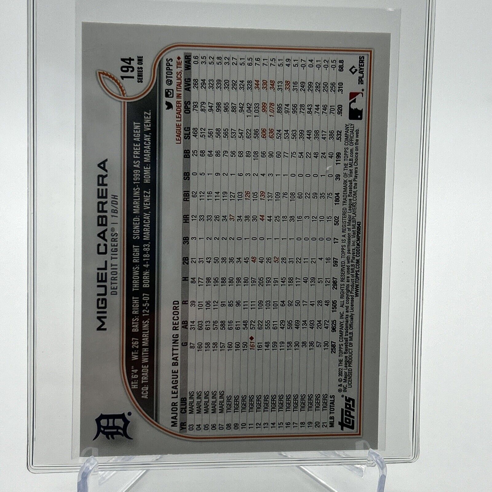 2022 Topps Miguel Cabrera Baseball Card #194 Mint FREE SHIPPING