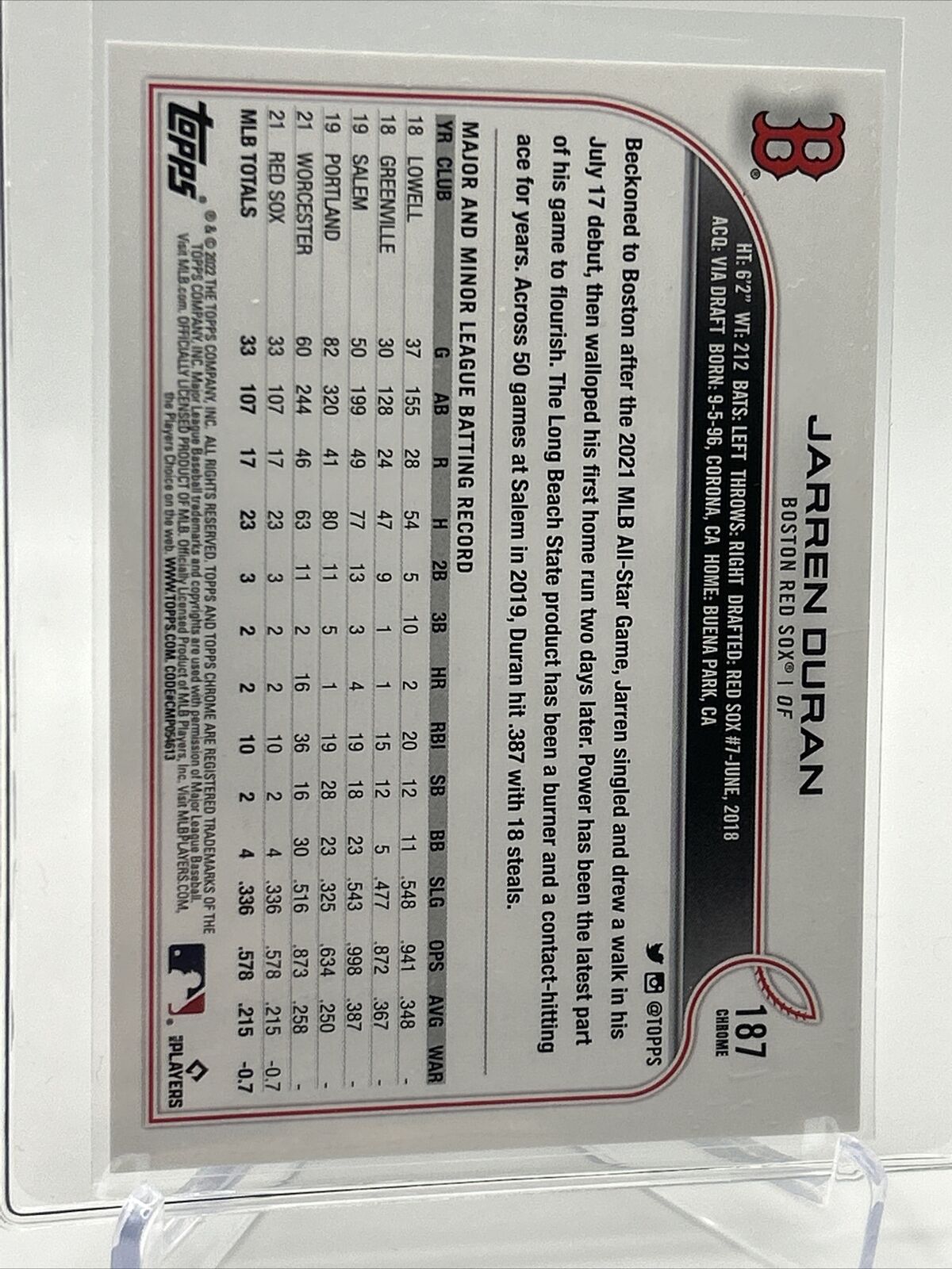 2022 Topps RETAIL SET Jarren Duran Rookie Baseball Card #187 Mint FREE SHIPPING