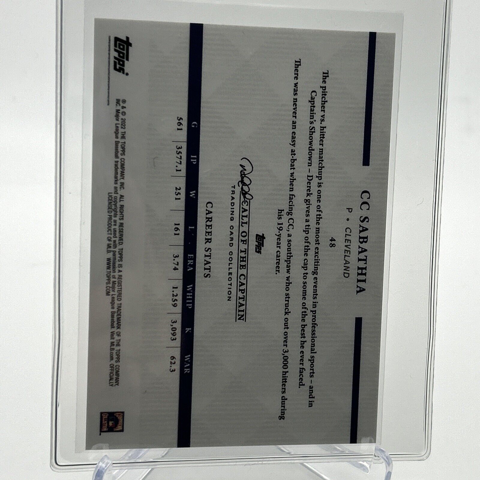 2022 Topps x Derek Jeter CC Sabathia Baseball Card #48 Mint FREE SHIPPING
