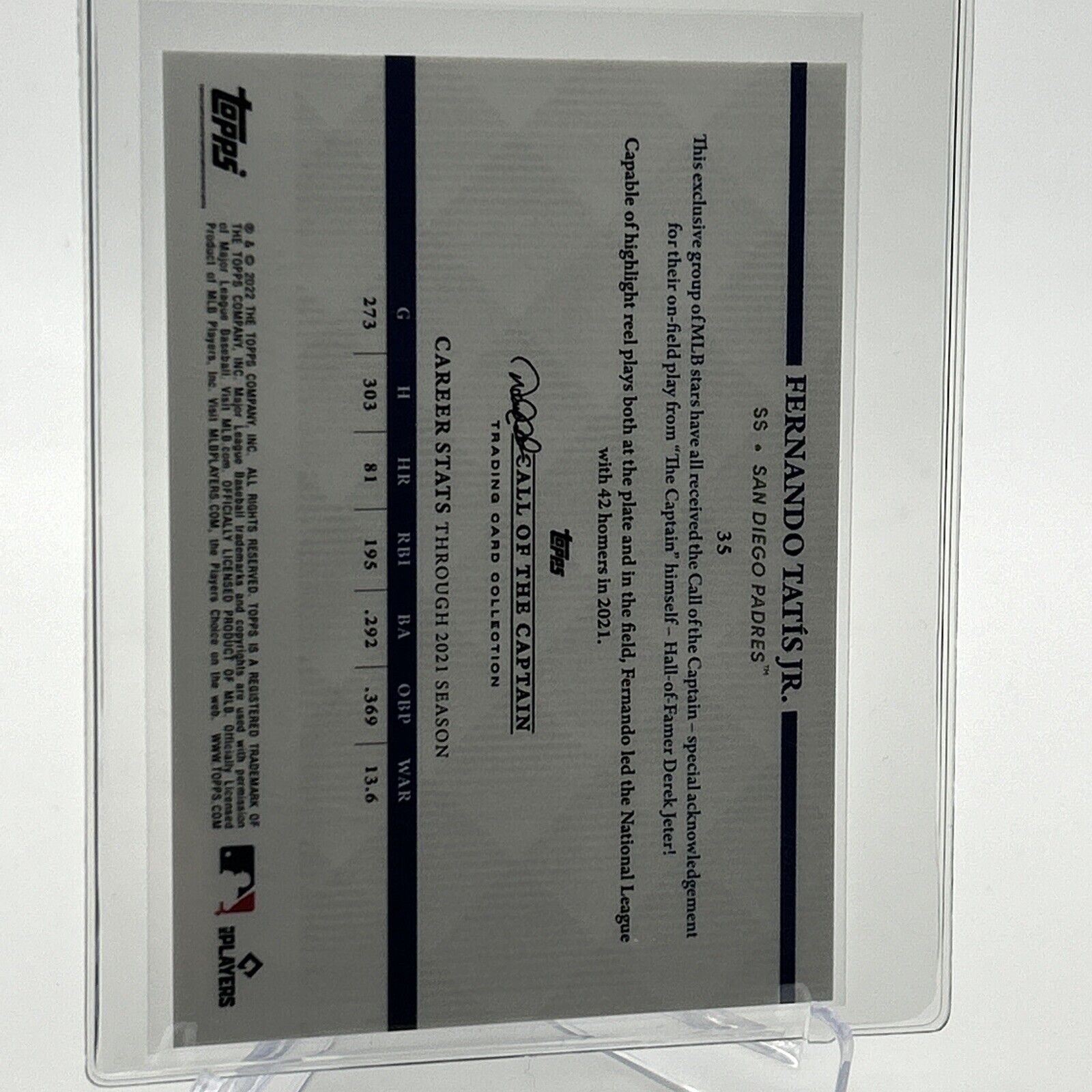 2022 Topps x Derek Jeter Fernando Tatis Jr. Baseball Card #35 Mint FREE SHIPPING