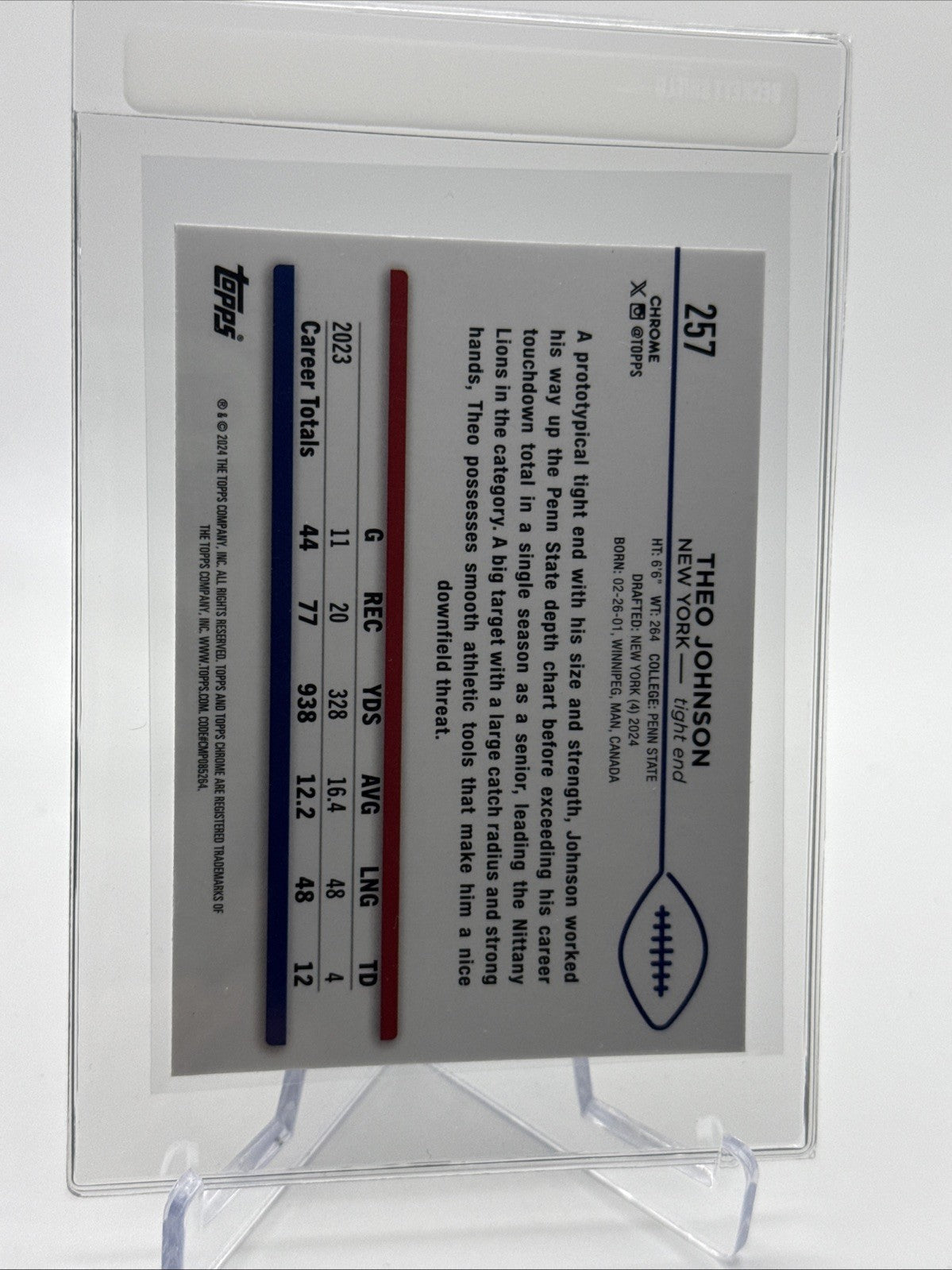2024 Topps Chrome Theo Johnson Rookie Football Card #257 Mint FREE SHIPPING