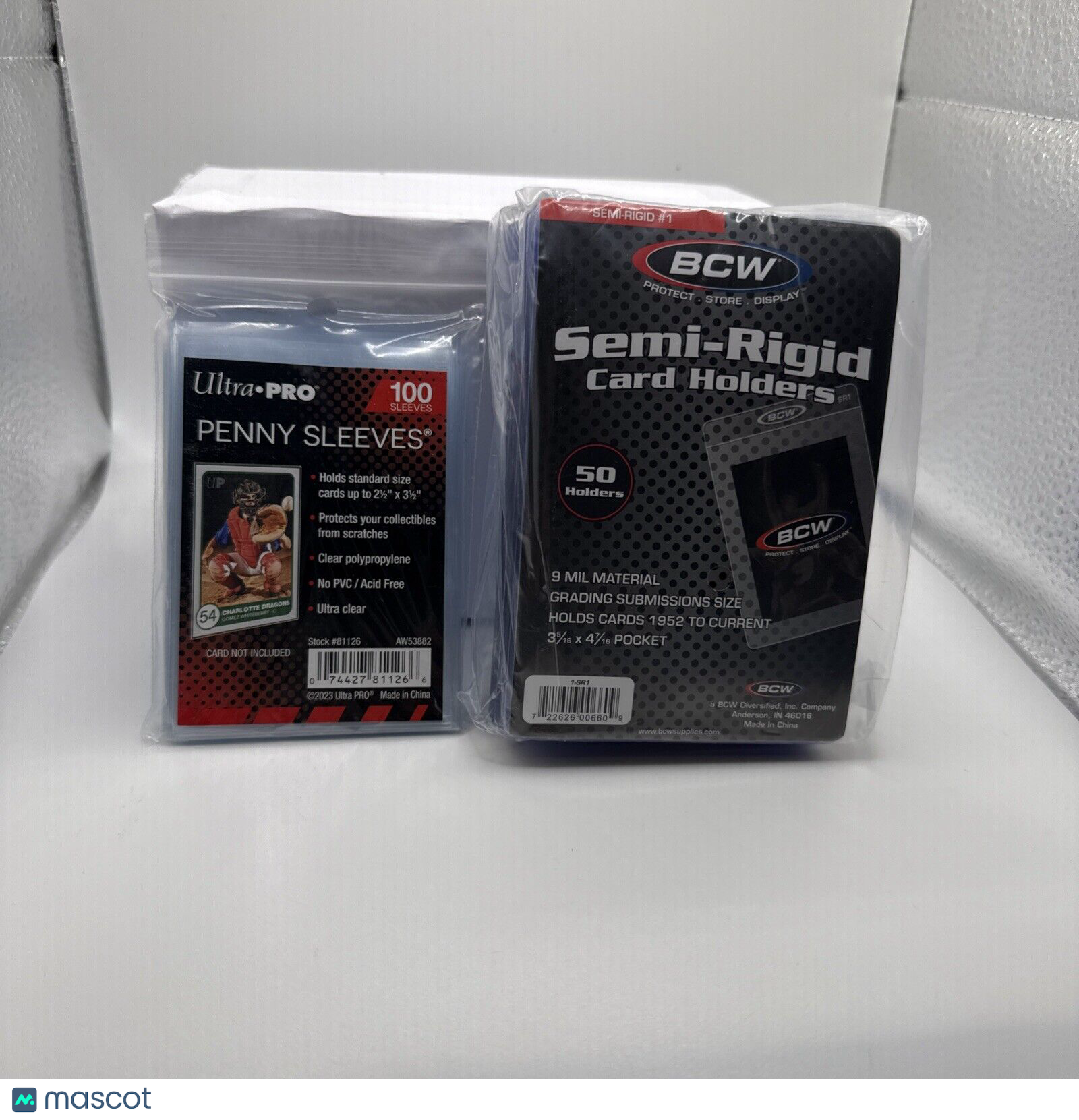 BCW Semi-Rigid Card Holders #1 Pack of 50 Holders PLUS Pack 100 Ultra Pro Penny