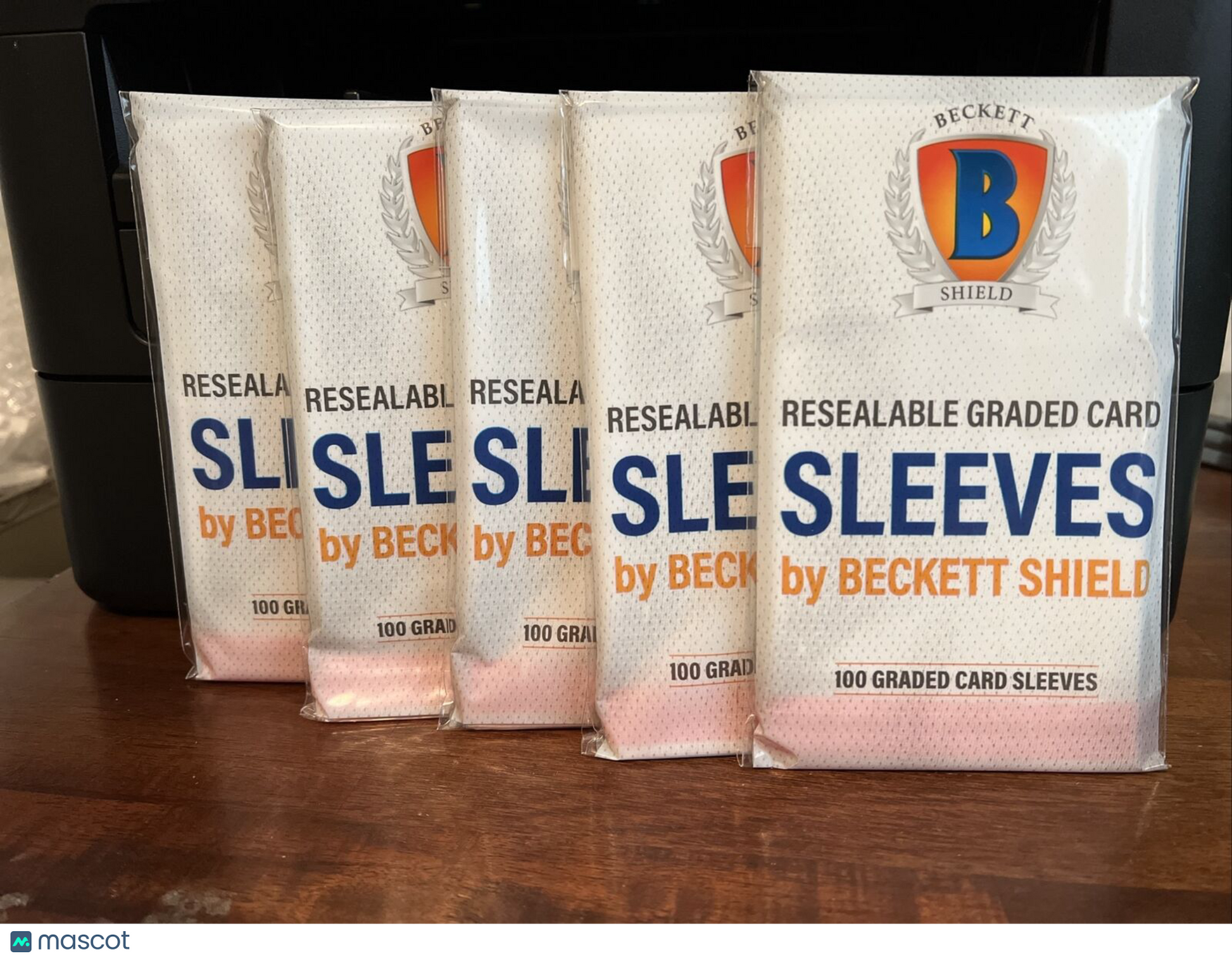 Beckett Shield Resealable Graded Card Sleeves 5 Packs of 100 - 500 Total