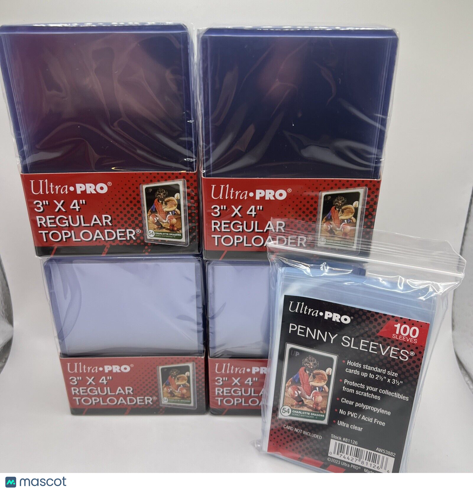 Ultra Pro 3X4 35pt Toploaders 4 Packs of 25 for Standard Cards and 100 sleeves