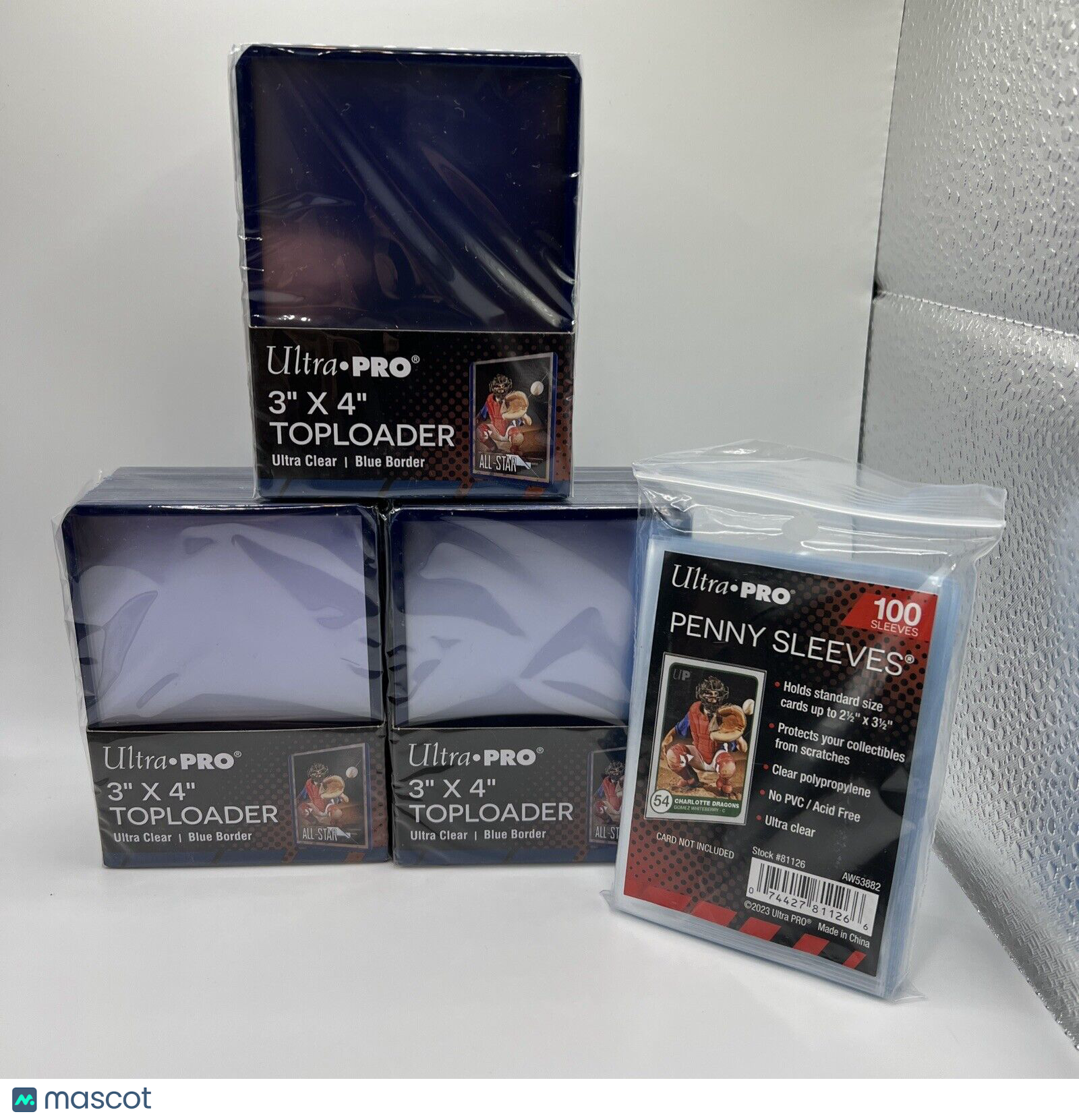 Ultra Pro 3X4 BLUE BORDER Toploaders 35pt 3 Packs of 25 AND 100 SLEEVES