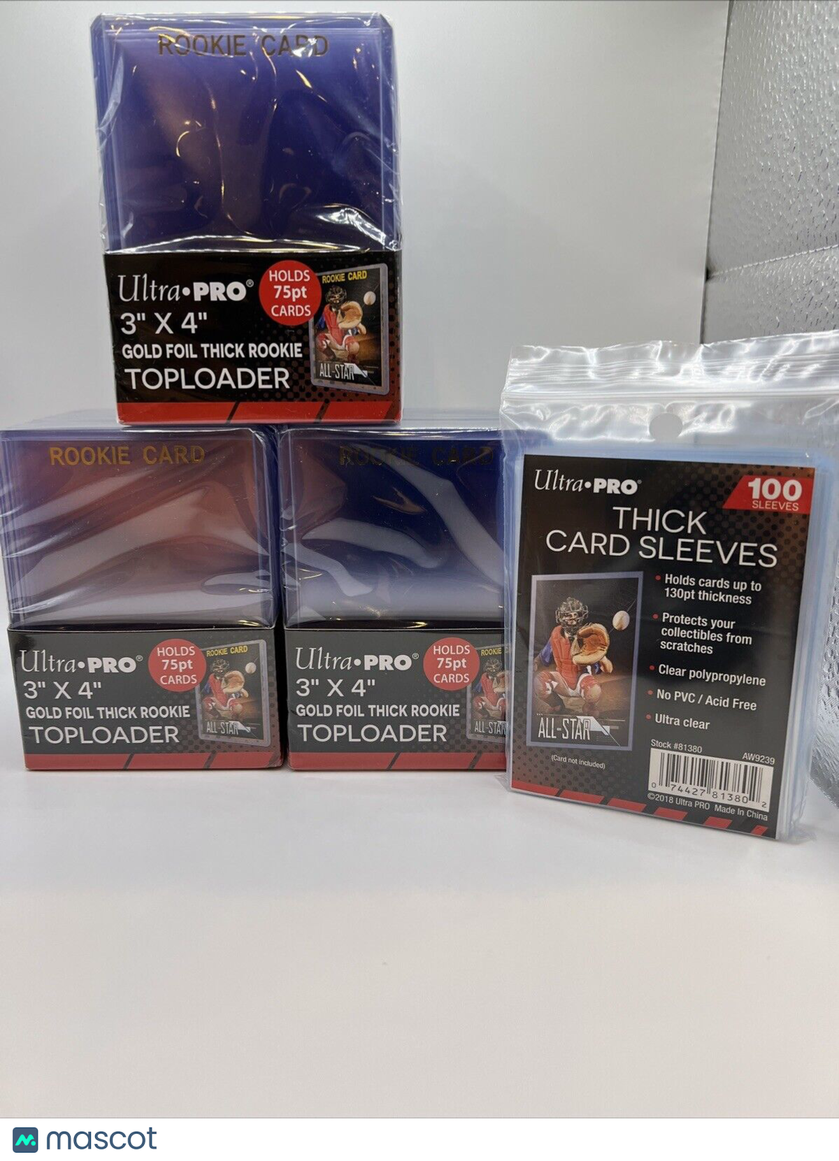 Ultra Pro 3X4 Gold Rookie 75pt Toploaders 3 Packs of 25 AND 100 THICK SLEEVES