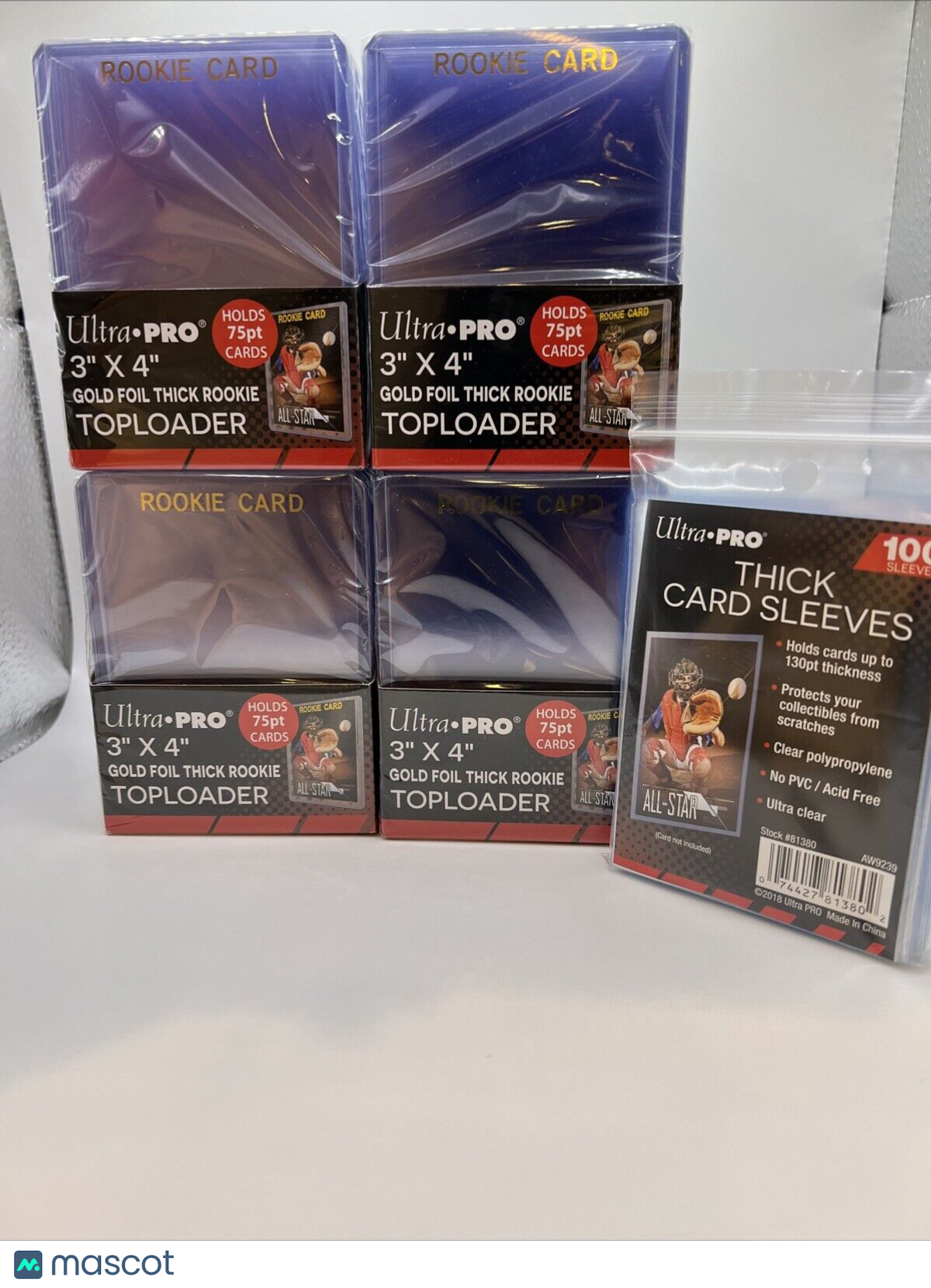 Ultra Pro 3X4 Gold Rookie 75pt Toploaders 4 Packs of 25 AND 100 THICK SLEEVES