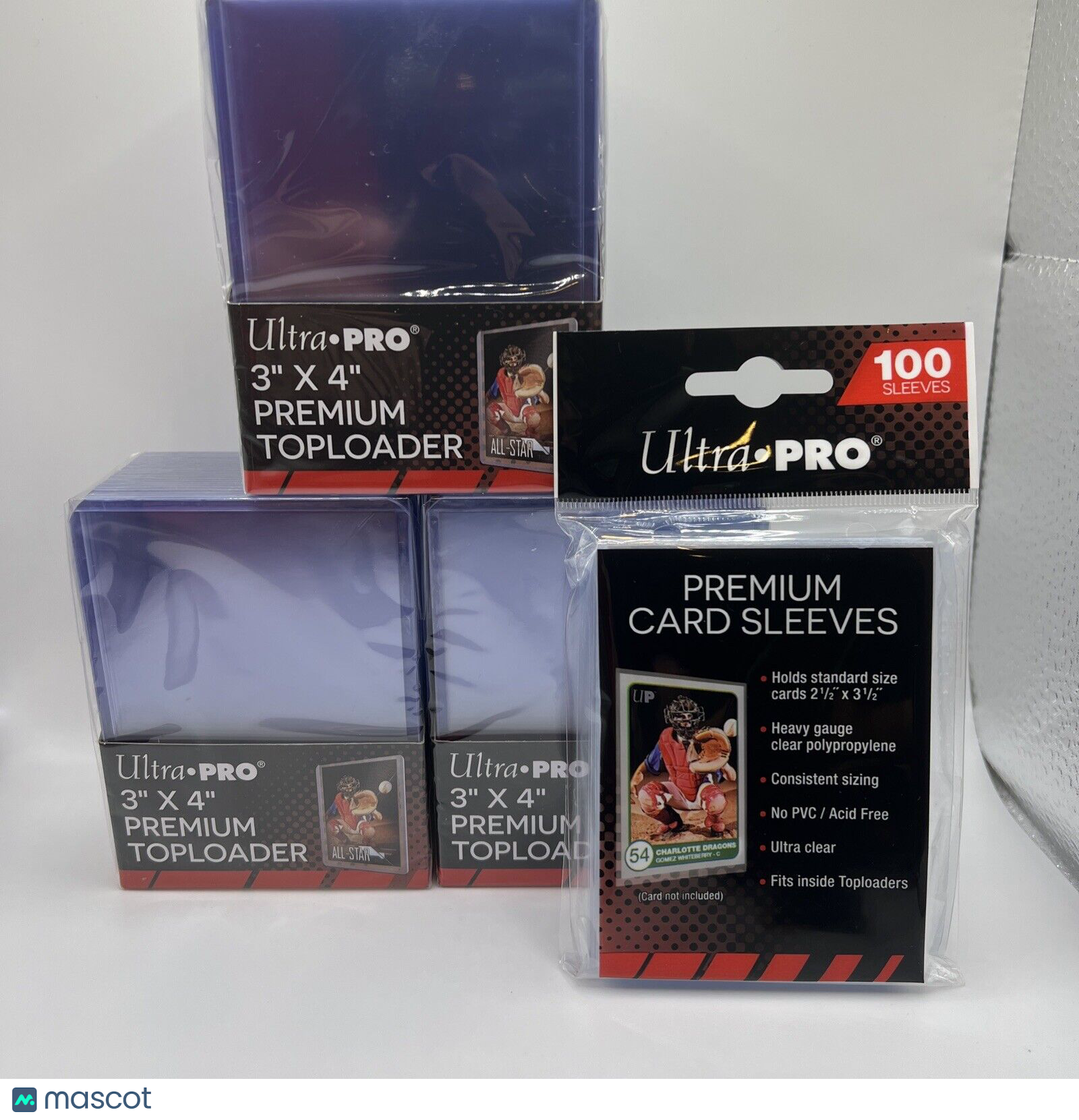 Ultra Pro 3X4 PREMIUM Toploaders 35pt 3 Packs of 25 and 100 PREMIUM soft sleeves