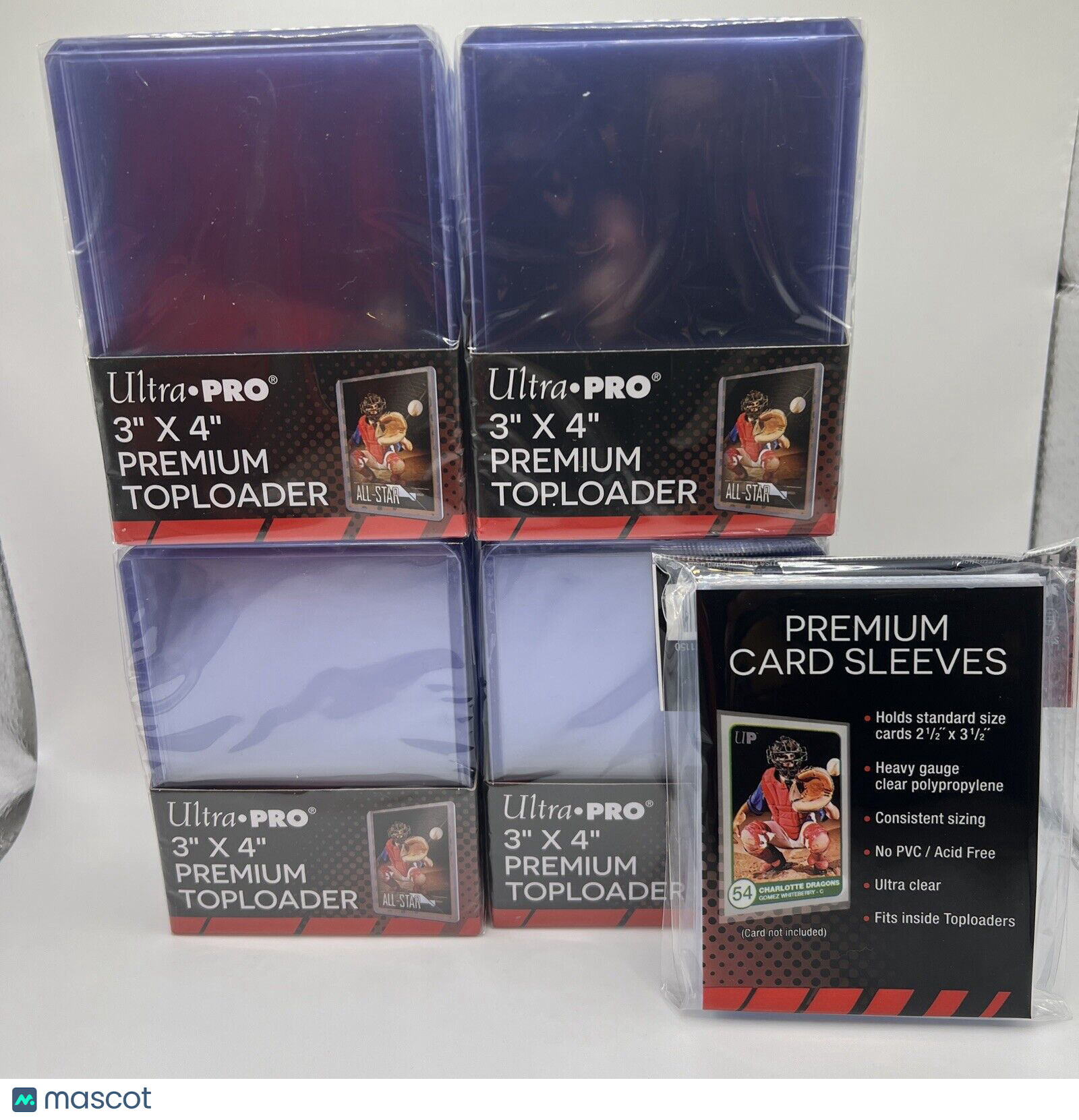 Ultra Pro 3X4 PREMIUM Toploaders 35pt 4 Packs of 25 and 100 PREMIUM soft sleeves
