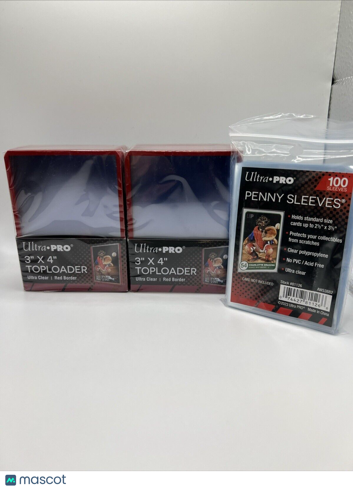 Ultra Pro 3X4 RED BORDER Toploaders 35pt 2 Packs of 25 AND 100 SLEEVES