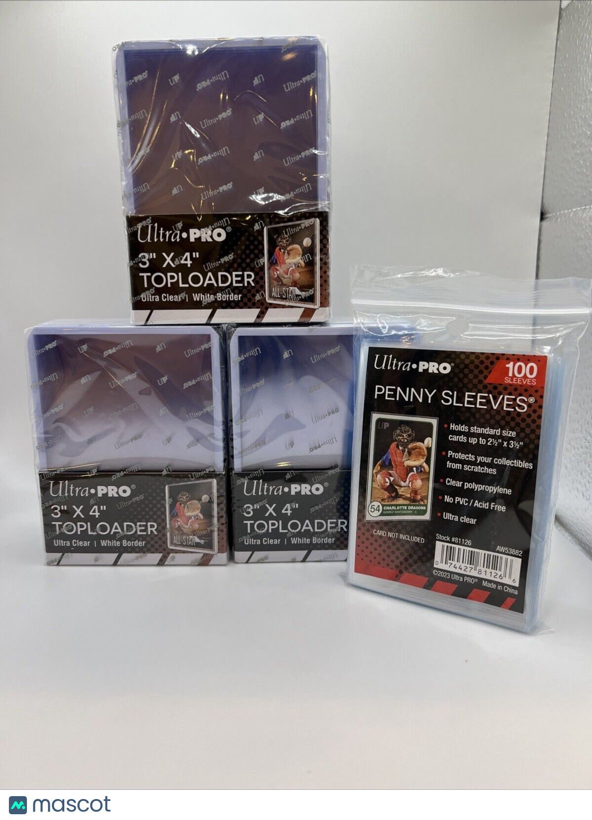 Ultra Pro 3X4 Toploaders 35pt WHITE BORDER 3 Packs of 25 AND 100 SLEEVES
