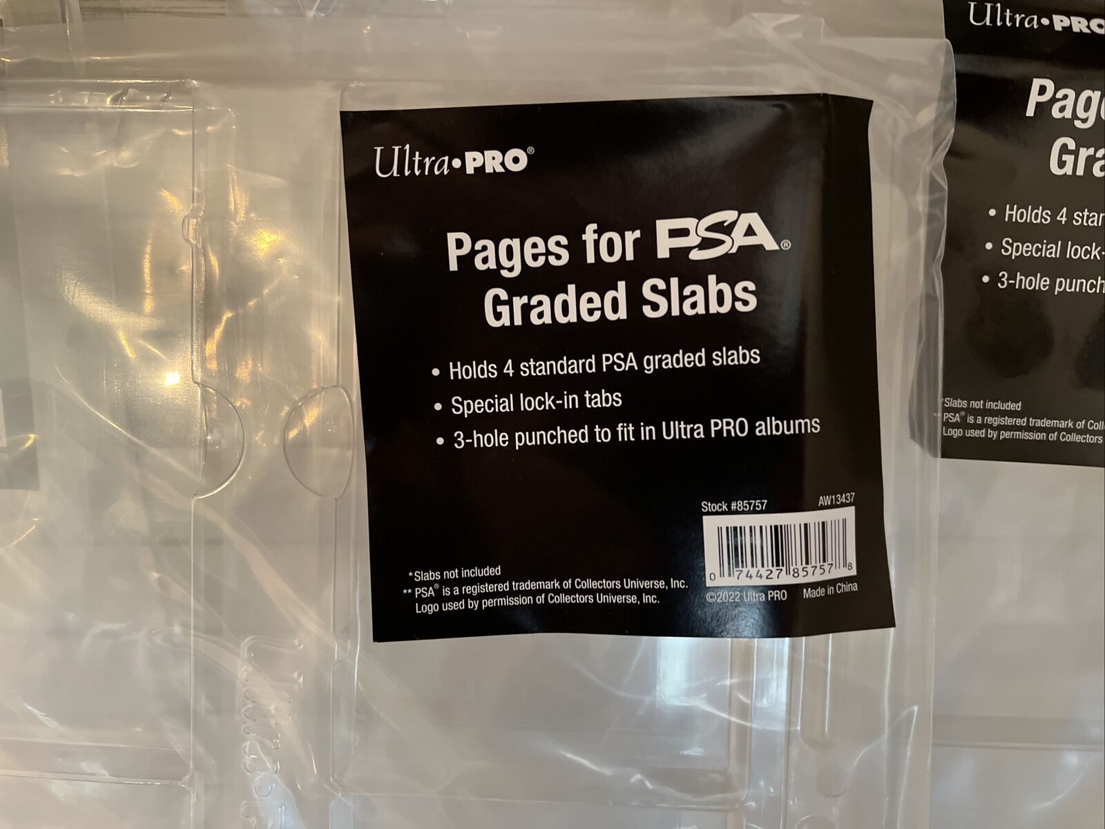 Ultra Pro Pages for PSA Graded Slabs- 4 PSA Graded Cards per Page- 5 Pages Total